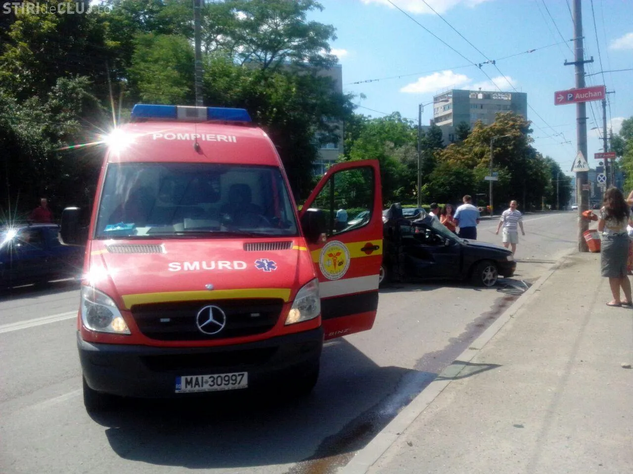 Un accident rutier, soldat cu rănirea unei persoane, a avut loc, duminică după-amiază, pe strada Al. Vaida Voievod, din Cluj-Napoca, lângă Iulius Mall Cluj.