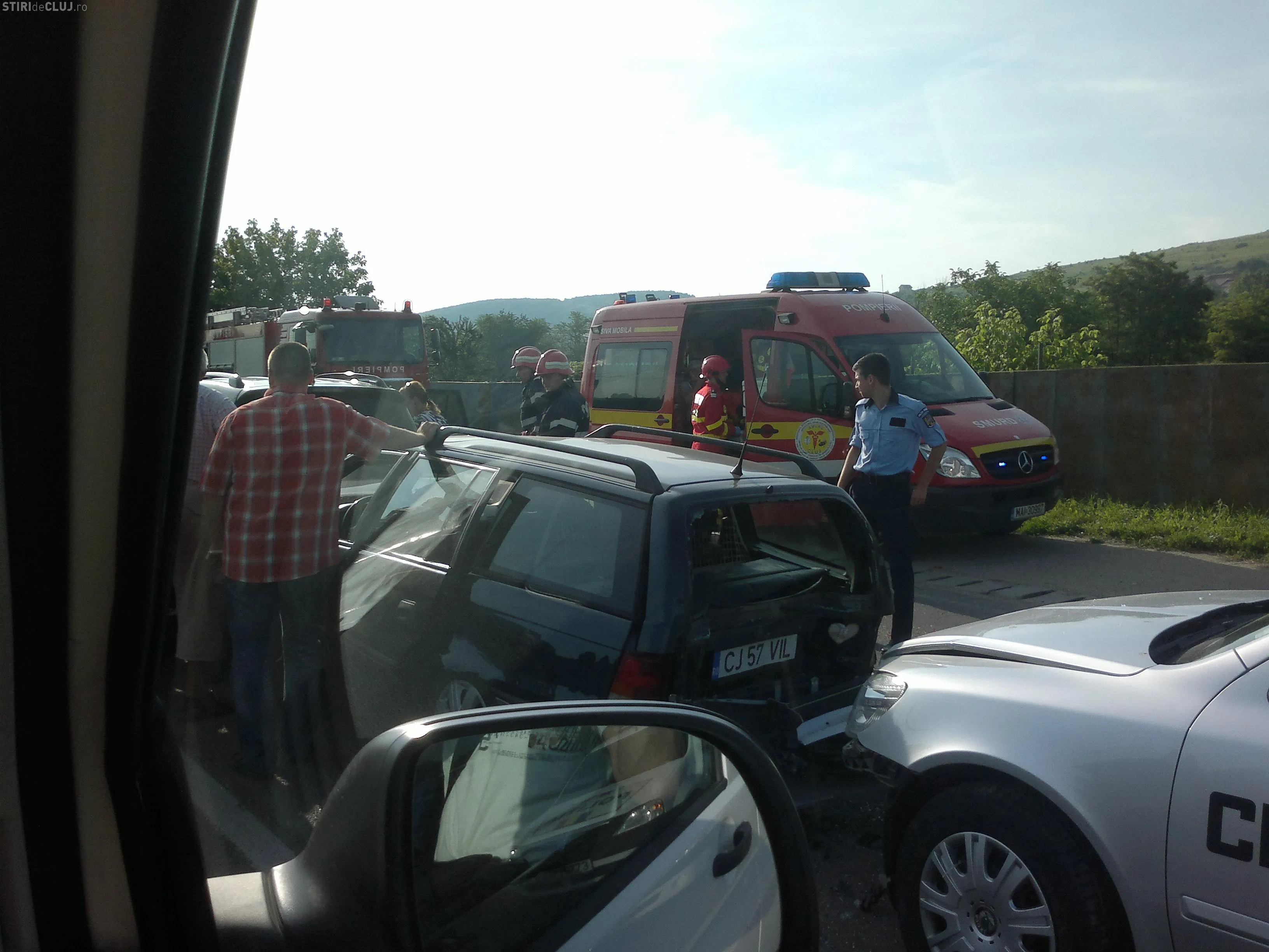 Potrivit reprezentanților IPJ Cluj, accidentul a avut loc din cauza nerespectării distanței regulamentare dintre cele trei autoturisme, în urma impactului doi copii și un adult fiind răniți ușor.