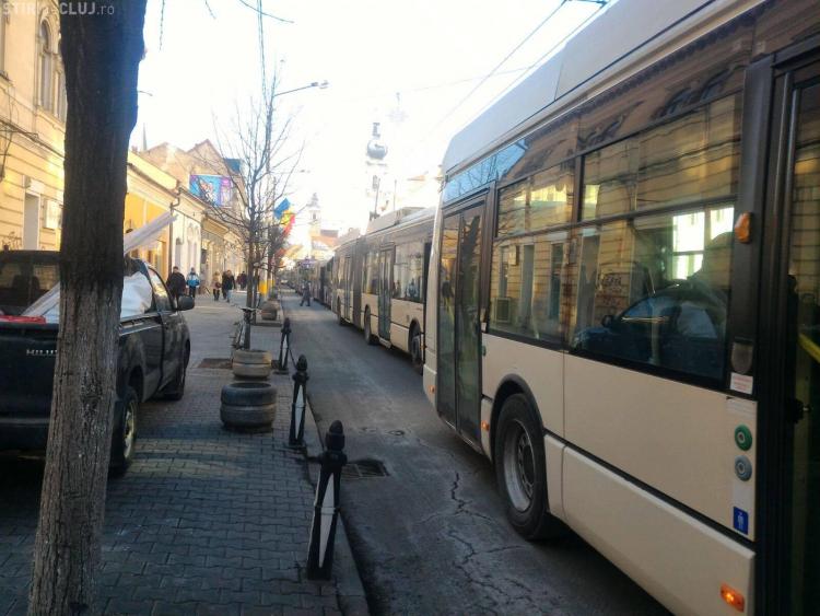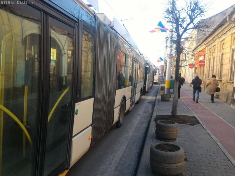 Accident! Un biciclist a blocat transportul în comun în centrul Clujului - VIDEO