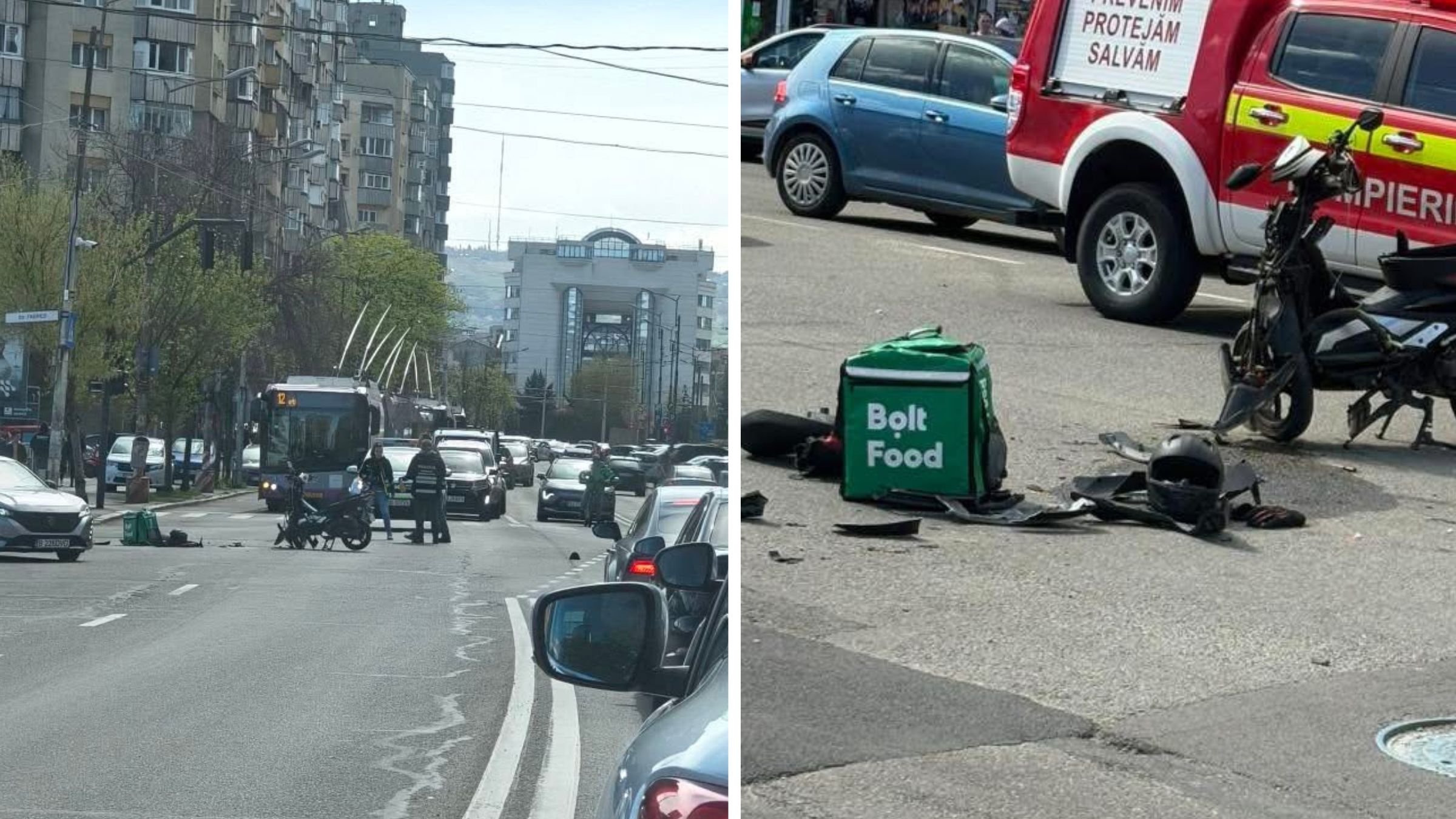 Un accident rutier s-a produs luni la prânz pe strada Fabricii din Cluj-Napoca. Un tânăr de 23 de ani nu s-ar fi asigurat corespunzător la schimbarea direcției și a intrat în coliziune cu un curier care se deplasa pe un moped.