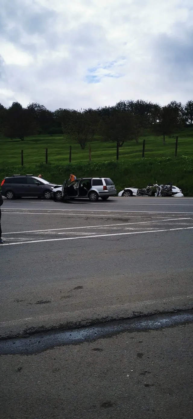 Șoferii implicați în accidentul de marți, 18 aprilie, s-au taponat chiar în dreptul mașinii avariate și abandonate în șanț.