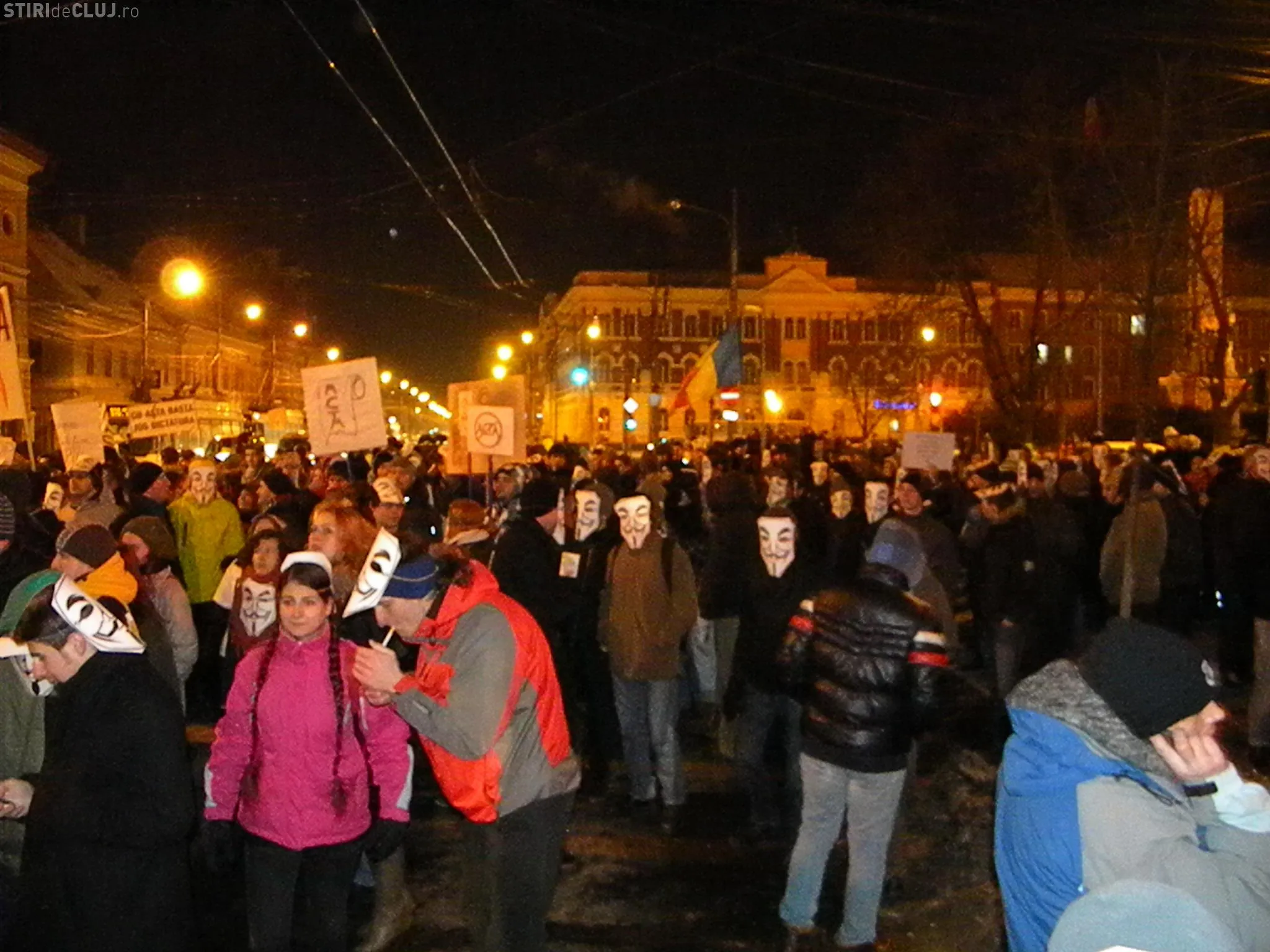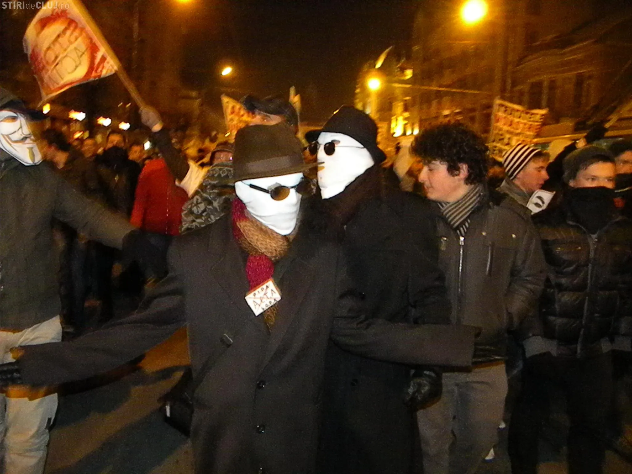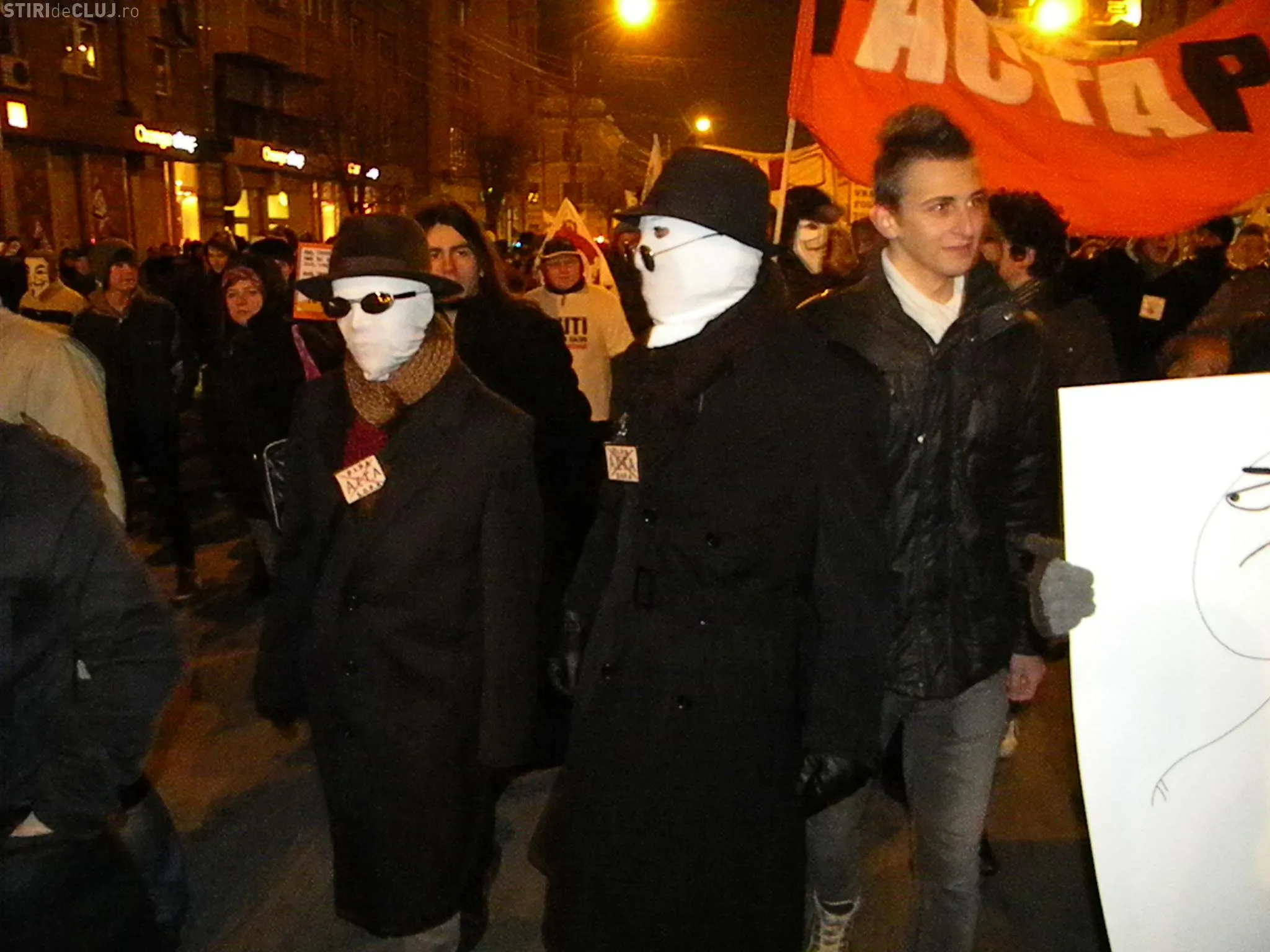 Protestatarii anti ACTA, stransi in Piata Unirii la ora 17.00, au pornit intr-un mars prin centrul Clujului. Manifestatia s-a unit cu cea a protestatarilor obisnuiti deja din Piata Unirii, care cer demisia lui Traian Basescu de cateva saptamani.