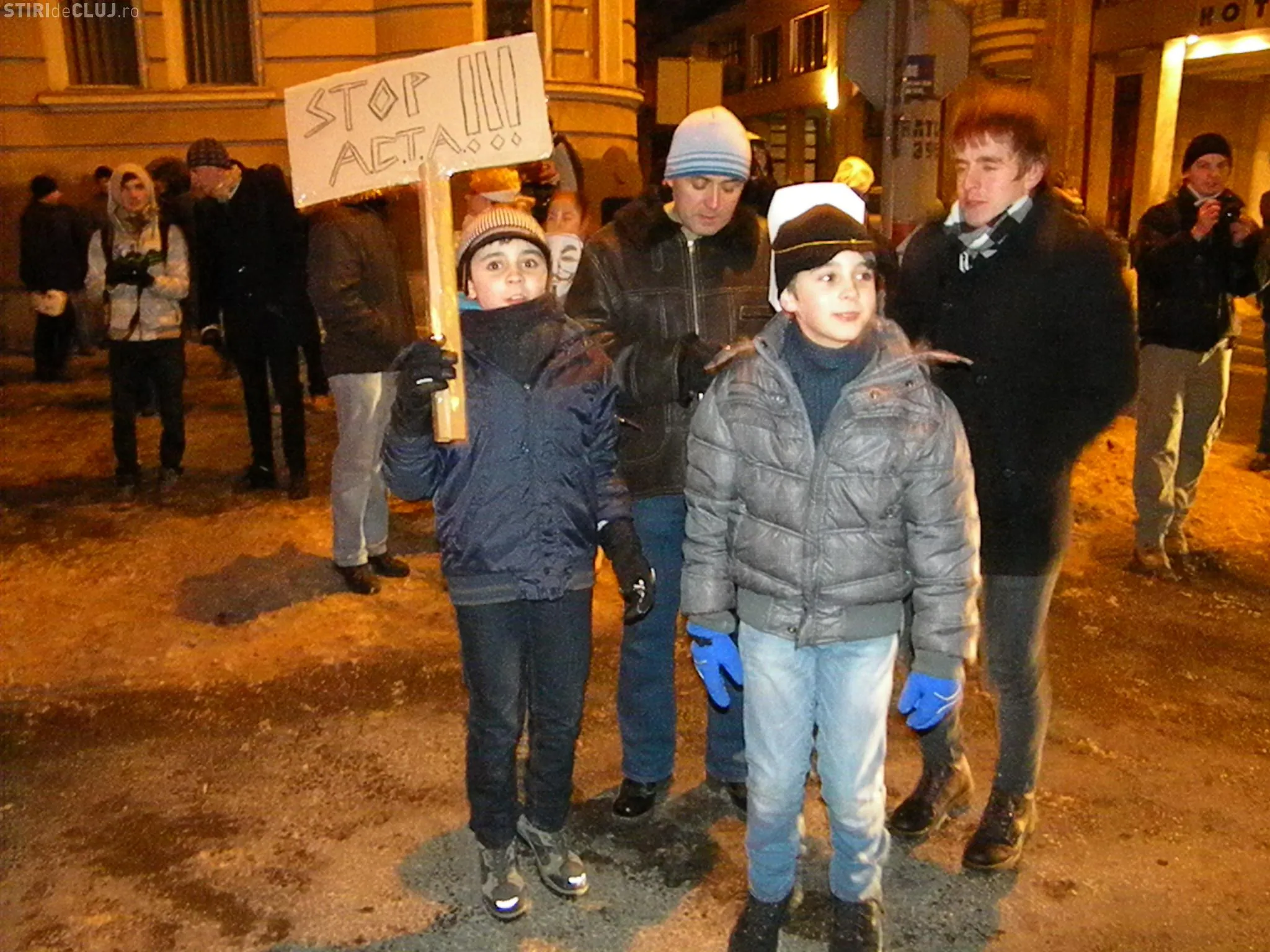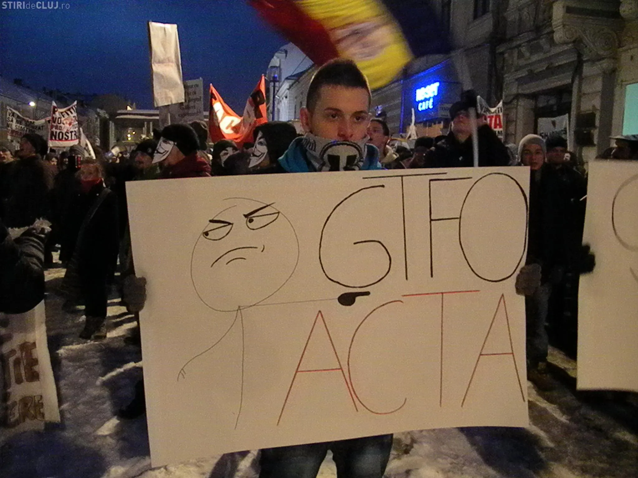 La protest au participat in special tineri. "In conditiile in care sa mergi la un film e tot mai scump, sa cumperi o carte la fel, mi se pare ca aceasta lege ACTA va ingradi si mai mult accesul la cultura. Stiu ca este ilegal sa iei un film de pe torent, dar, daca nu il luam, la cinema nu mergem, pentru ca nu ne permitem", a spus un clujean.