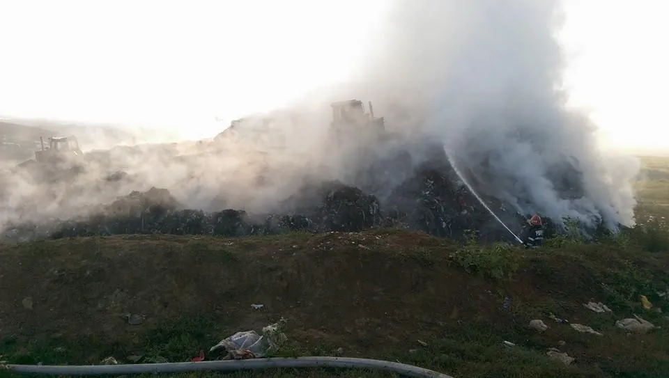 Acțiune extrem de grea pentru pompieri, la rampa de gunoi de la Pata Rât. Au lichidat incendiul după 19 ore GALERIE FOTO