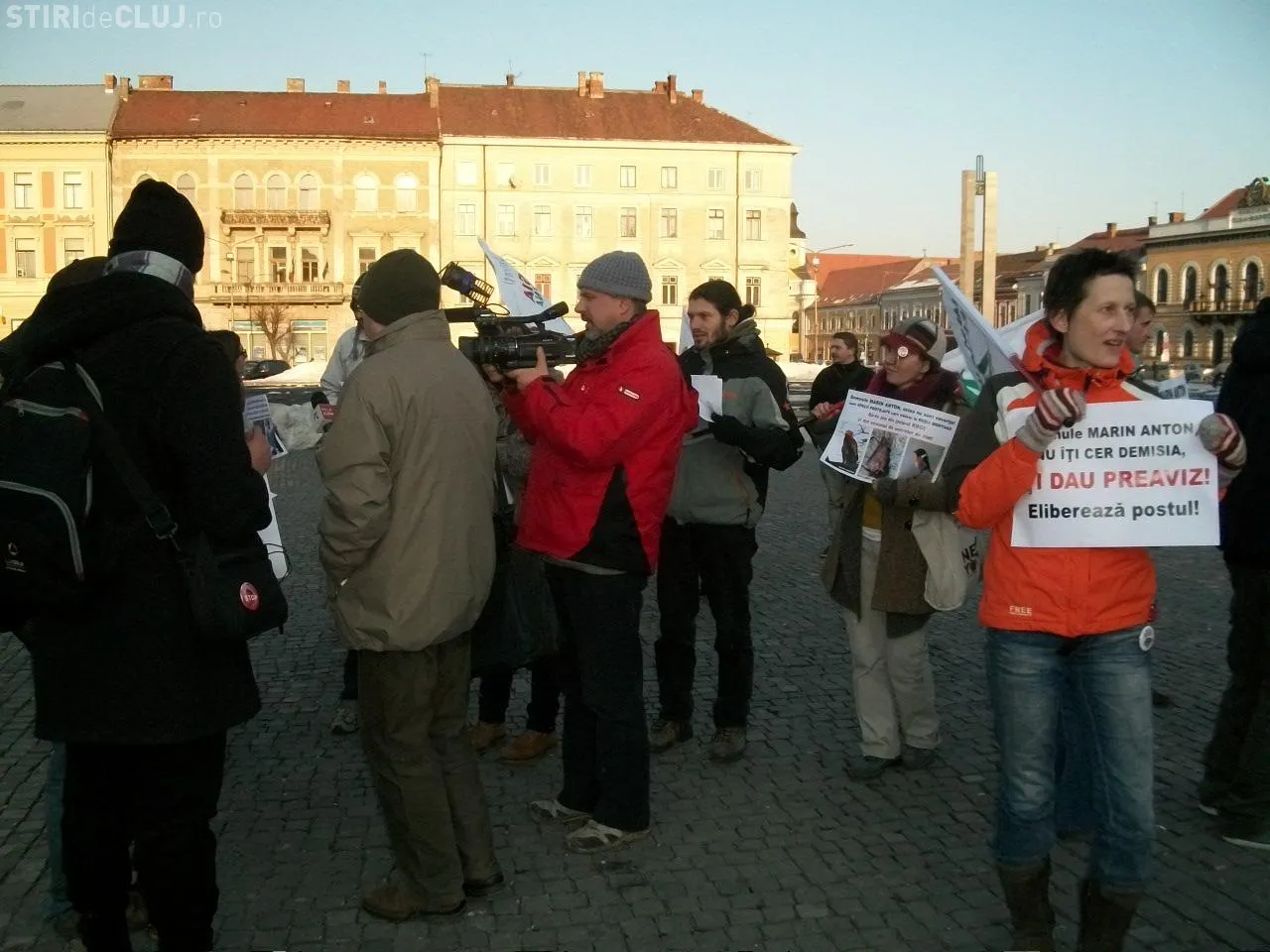 Activistii "Salvati Rosia Montana" au sustinut miercuri, 7 martie, un protest impotriva secretarului de stat de la Ministerul Mediului si Padurilor, Marin Anton.