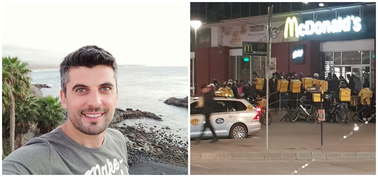 Actorul clujean, Bogdan Bob Rădulescu, a comentat fotografia devenită virală cu zecile de livratori de mîncare adunați în fața restaurantului McDonalds.