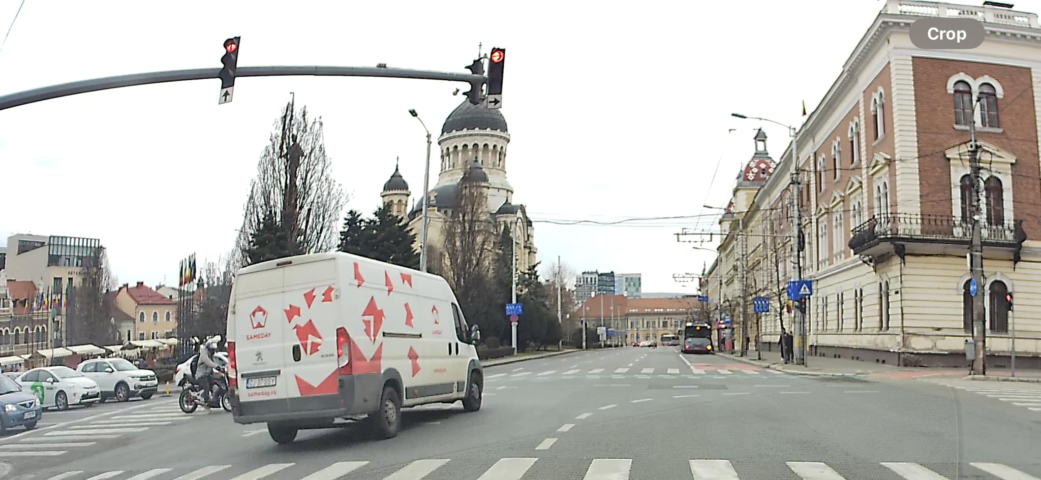 Șoferul unei dube a intrat pe roșu în intersecția de lângă Teatrul Național, fiind la un pas de un accident teribil.