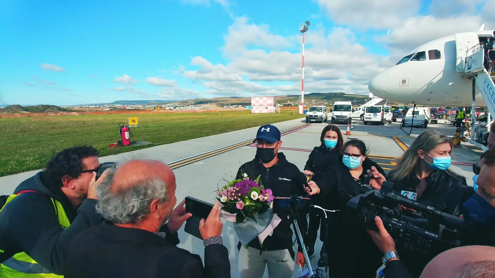Chiar dacă a trecut de la 30 de grade la 10 grade la Cluj, Cristian a fost primit cu multă căldură pe Aeroportul Internațional ”Avram Iancu” Cluj.