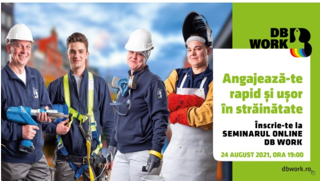 În plus, dacă vrei mai multe informații despre cum te poți angaja și tu în siguranță în străinătate, poți participa la seminarul online organizat de DB Work „Află cum să te angajezi rapid și ușor în străinătate în siguranță”, care va avea loc marți, pe 24 august 2021, la ora 19:00. În cadrul acestui seminar, specialiștii în recrutare de la DB Work vor discuta despre provocările pe care un candidat le poate avea în procesul de aplicare, despre ceea ce înseamnă să lucrezi în condiții sigure în străinătate și despre care sunt beneficiile pe care un angajat DB Work le are atunci când ajunge în noua sa țară.