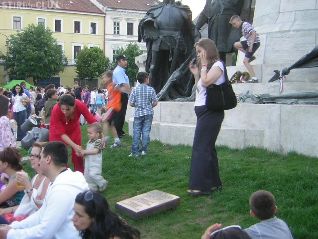 Politistii au intervenit dupa ora 20.00, la indemnul superiorilor, desi zeci de copii se jucau pe soclul statuii inca de la ora 17.00, cand a inceput spectacolul dedidact Zilelor Clujului in Piata Unirii.