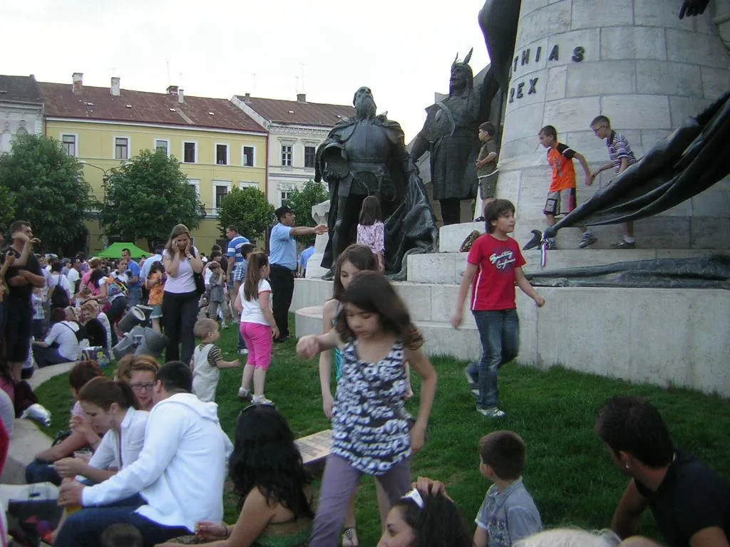 Zeci de copii si adulti care urmareau show-ul de la Zilele Clujului de pe iarba sau soclul statuii lui Matei Corvin au fost dati jos de politisti.