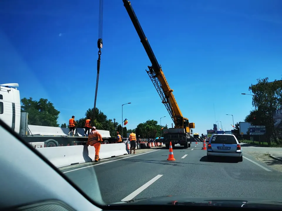 Aglomerație spre Florești! Se montează parapete de beton pe mijlocul drumului - FOTO