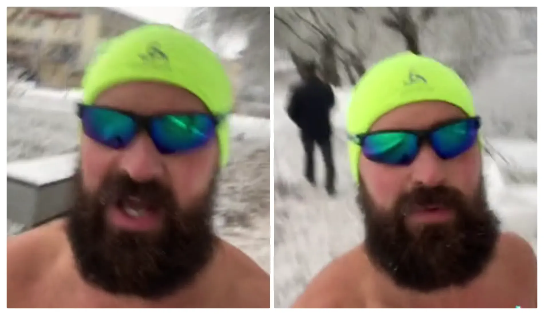 Paul Năoian a început din nou să alerge la la bustul gol prin Cluj-Napoca, fără să îi pese că afară, miercuri dimineața, era temperatură extrem de scăzută.