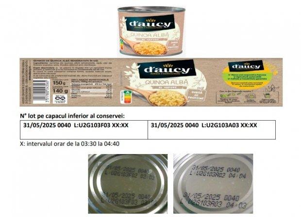 În data de 31 martie 2022, Compania Generală de Conserve România SRL retrage de la comercializare următorul produs, ca măsură de precauție: d’Aucy QUINOA ALBĂ AL VAPORE 150 G. Motivul retragerii acestui produs este prezența unui miros neplăcut la deschiderea conservelor de QUINOA ALBĂ AL VAPORE 150 G, ceea ce face ca produsul să nu fie comestibil și cu risc bacteriologic.