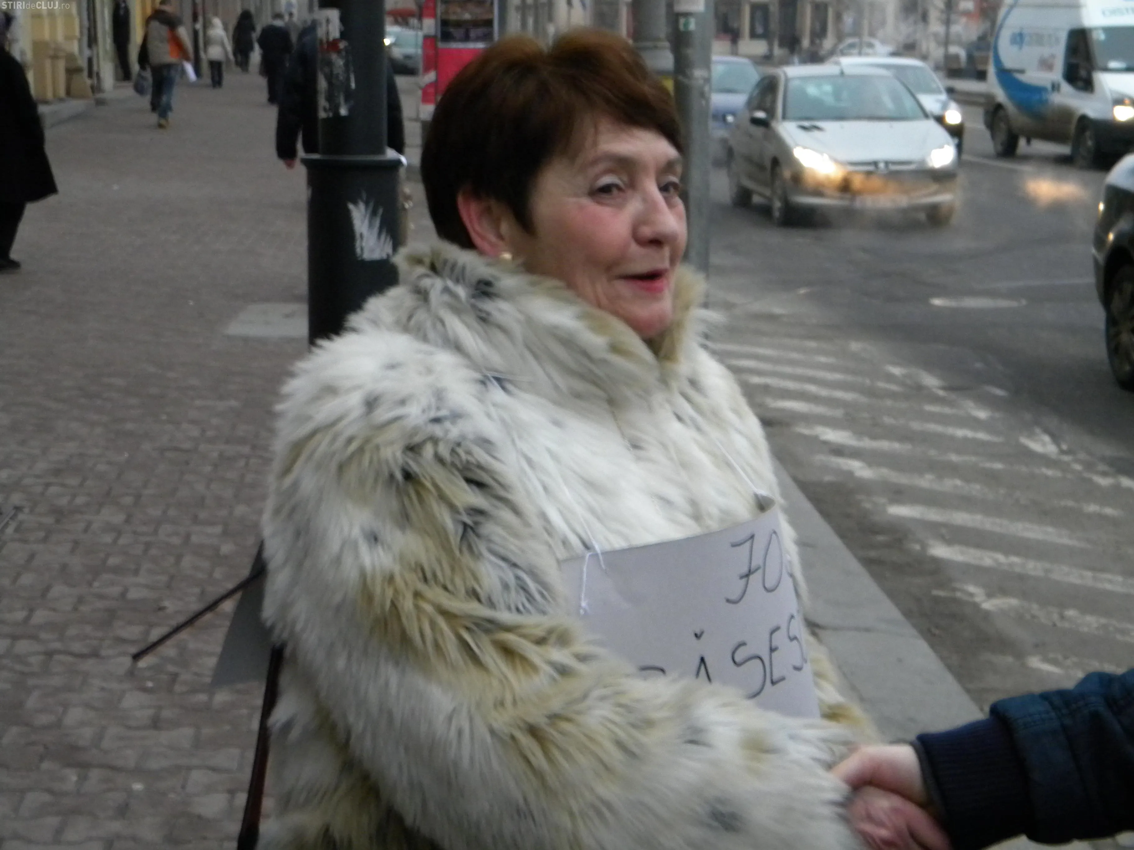 Alice Rotta, in a treia zi de protest in fata sediul PDL Cluj! Femeia a fost supravegheata de politisti si jandarmi