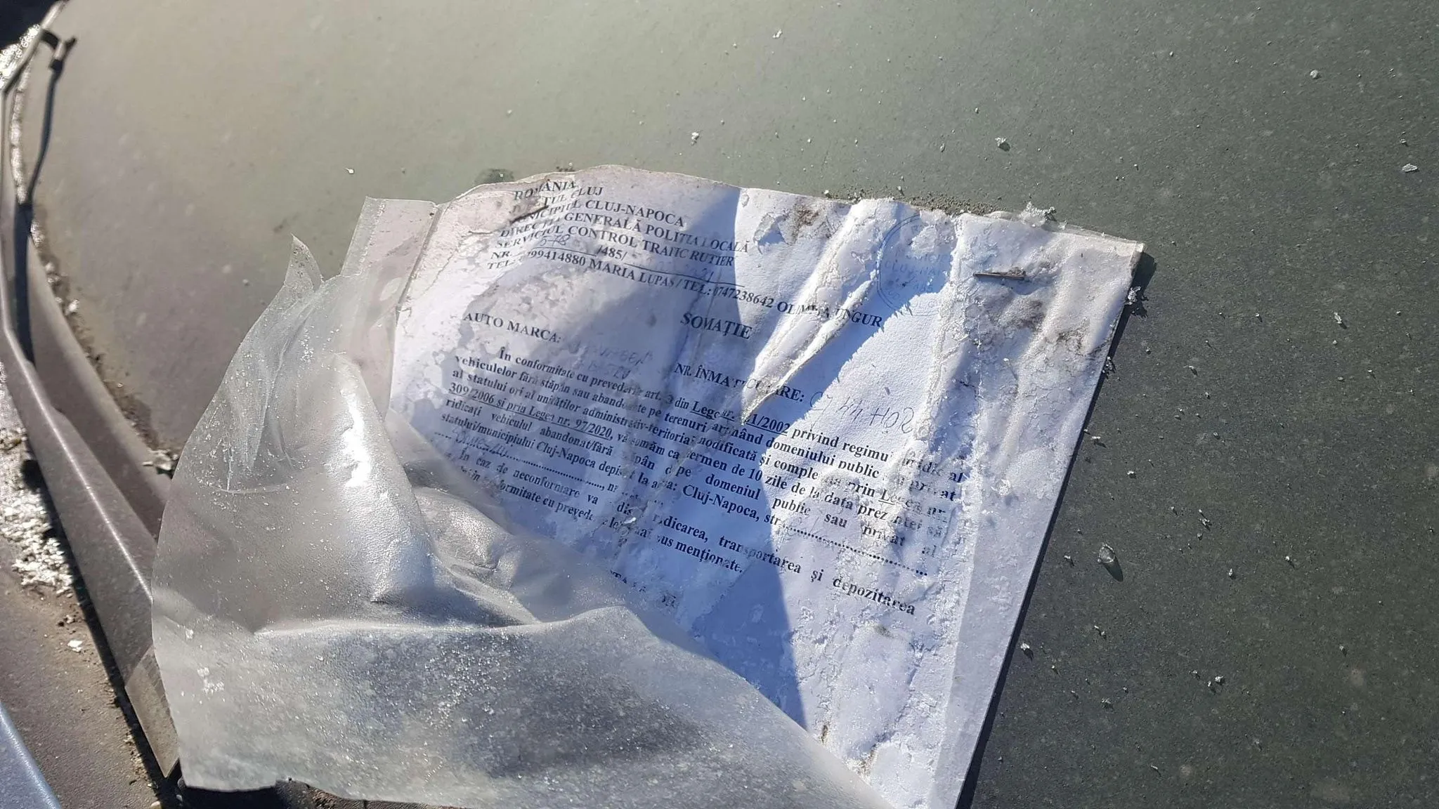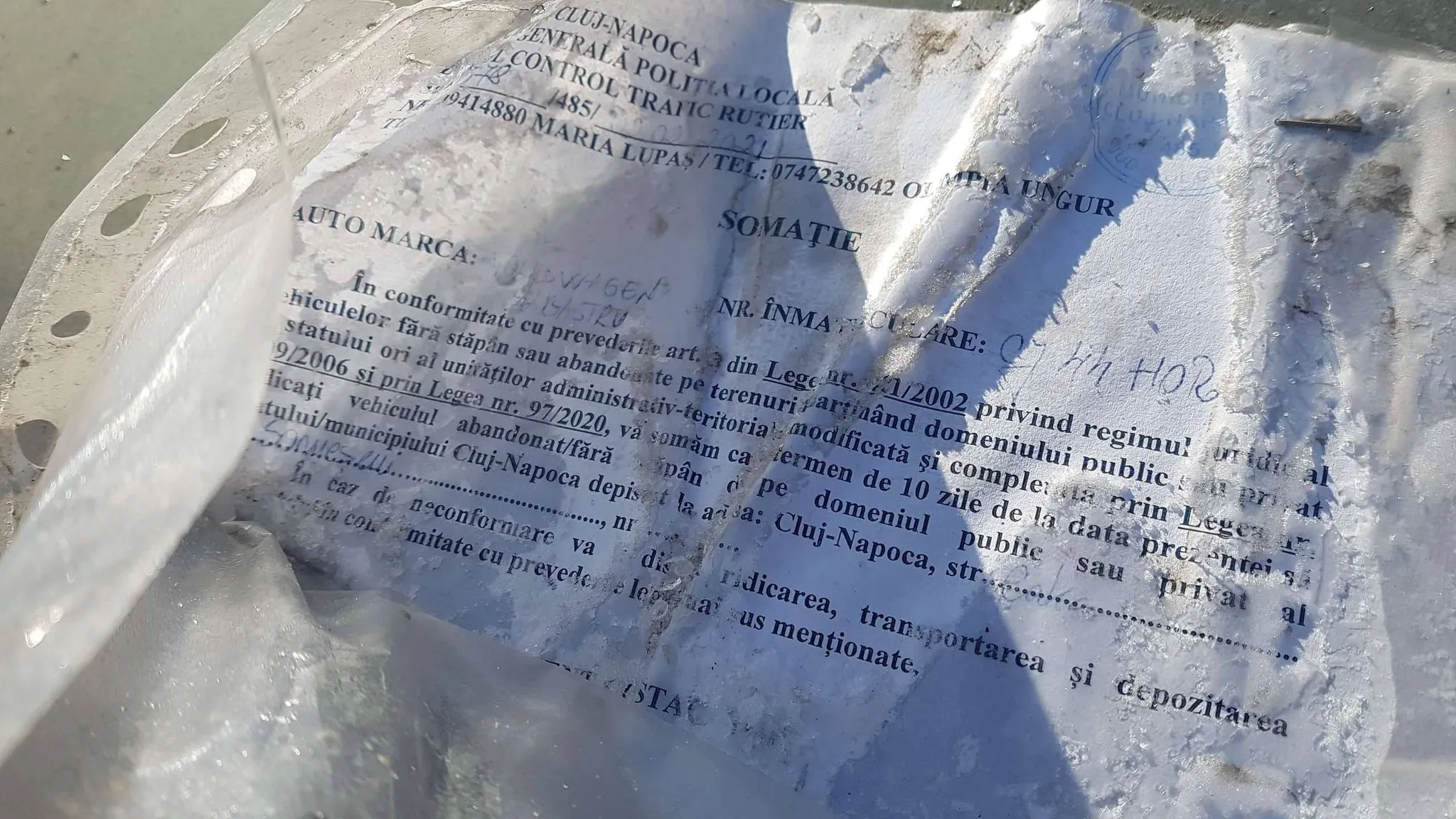 Poliția locală a avut o tentativă de a-i sesiza pe proprietari să își ridice mașinile, dar ambele părți nu și-au mai făcut apoi treaba până la capăt. De pe hârtia pusă în parbiz, s-ar părea că Poliția Locală Cluj-Napoca a lăsat avertismentul în 2 februarie.
