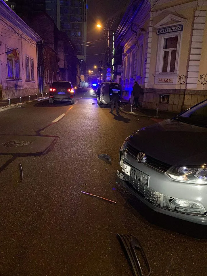 După ce sâmbătă, 18 ianuarie, un autoturismul s-a răsturnat pe strada Dorobanților, duminică seara o altă mașină s-a răsturnat pe strada Nicolae Bălcescu