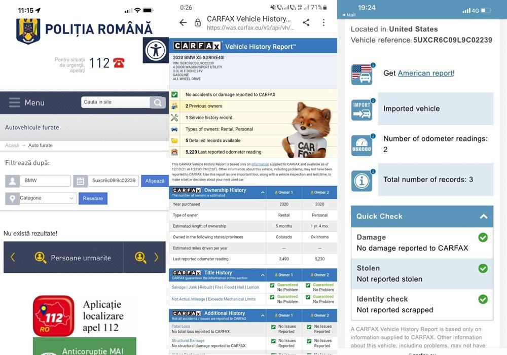 ”Din cercetările efectuate în cauză. rezultă că autorităţile din S.U.A. au introdus la data de 05.11.2021 o alertă EASF privind furtul unui autoturism marca BMW X5 cu seria de şasiu 5UXCR6C09L9C*****.