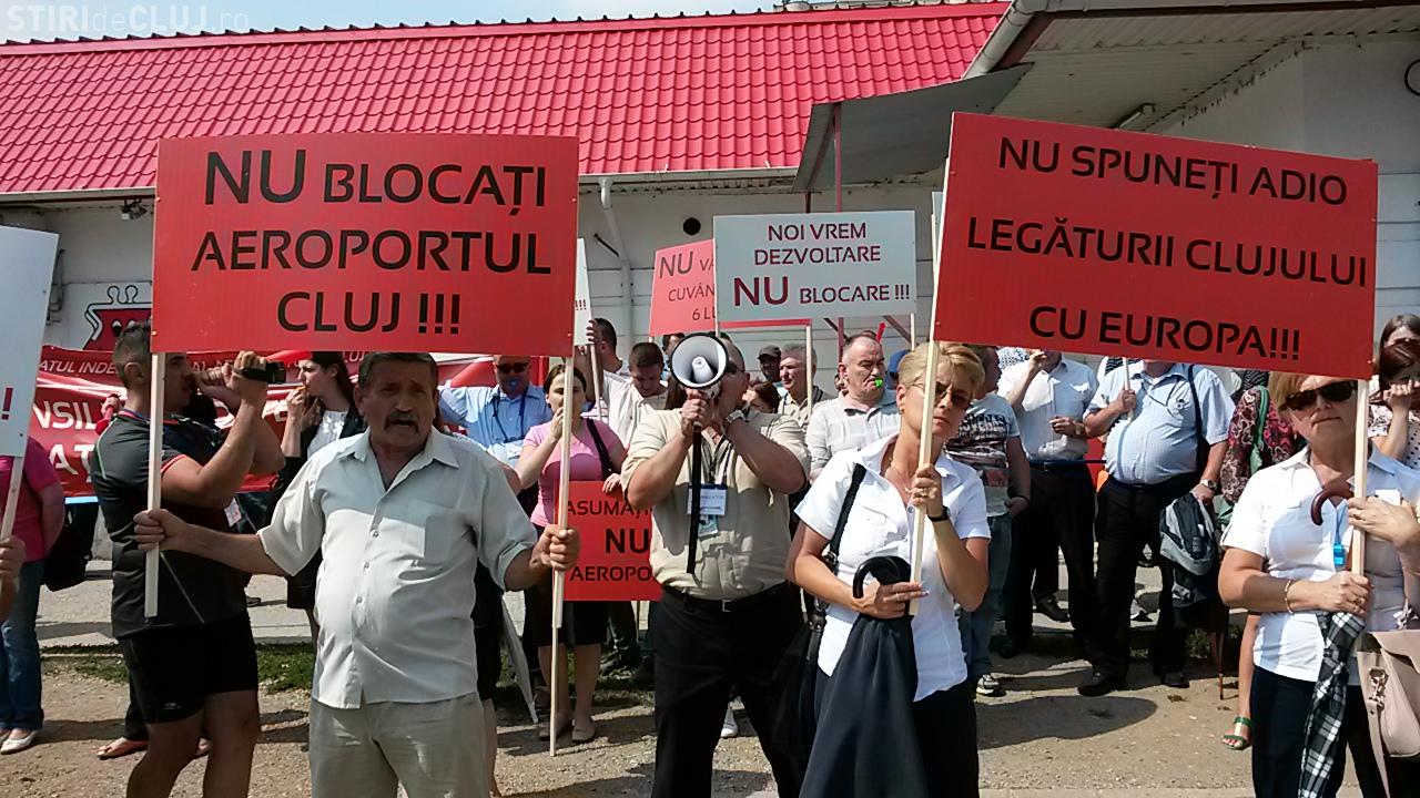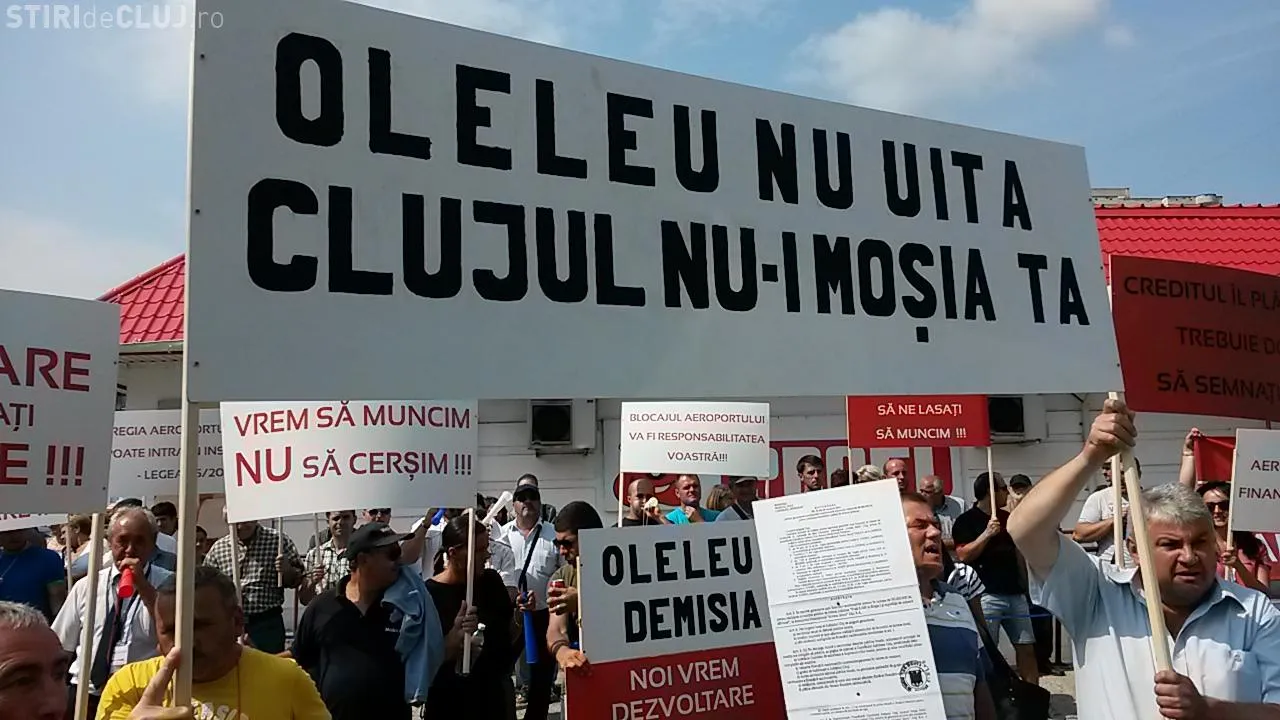 Angajații Aeroportului protestează în fața Consiliului Județean: ”Oleleu, nu uita, Clujul nu-i moșia ta!” FOTO