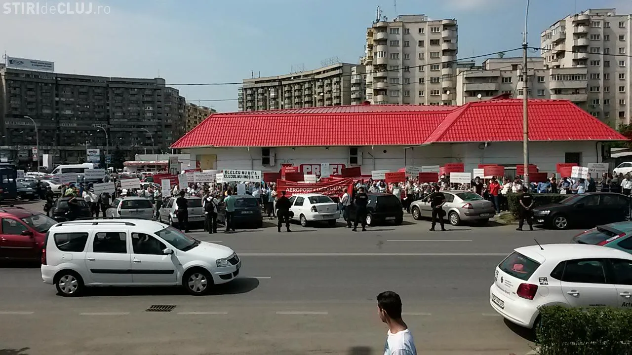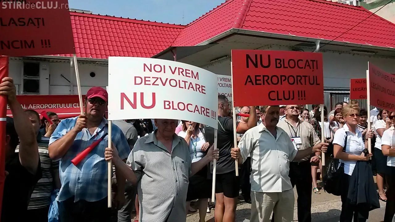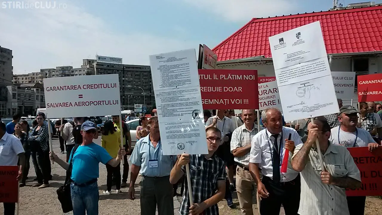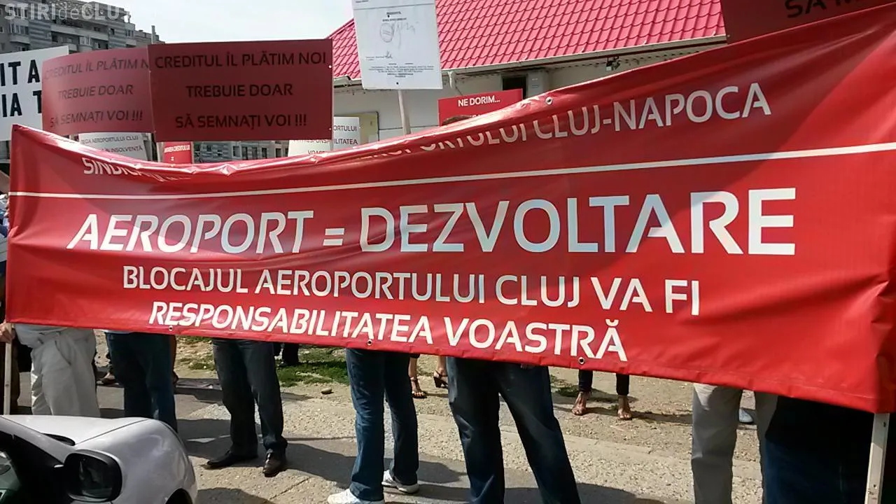 Peste două sute de angajați ai Aeroportului Internațional ”Avram Iancu” Cluj-Napoca au protestează în fața Consiliului Județean.