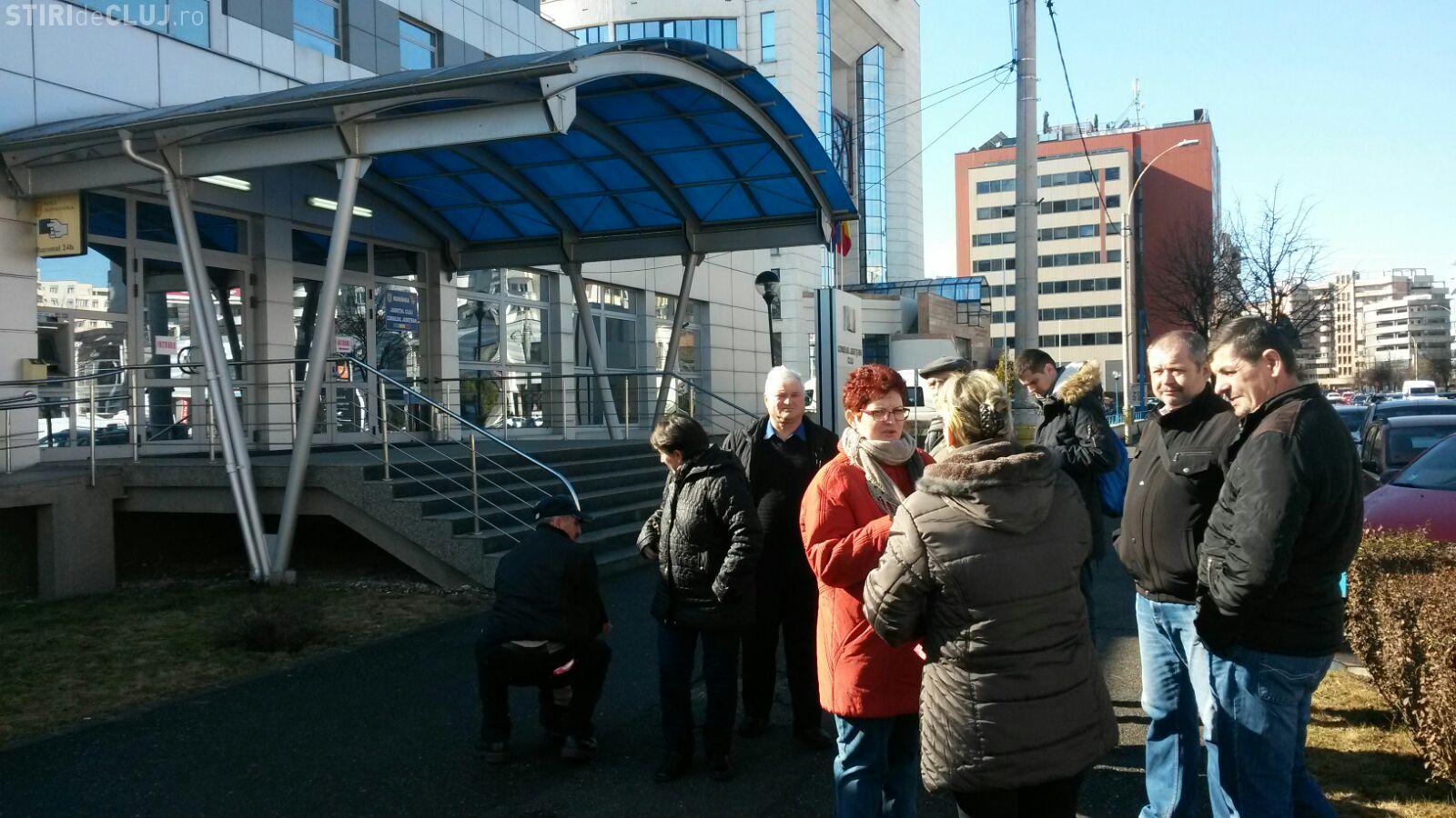 Mai mulți angajați firmei Paza și Protecție Cluj (n.red foștii Gardieni Publici), firmă subordonată Consiliului Județean Cluj, s-au adunat, miercuri dimineață, în fața instituției.
