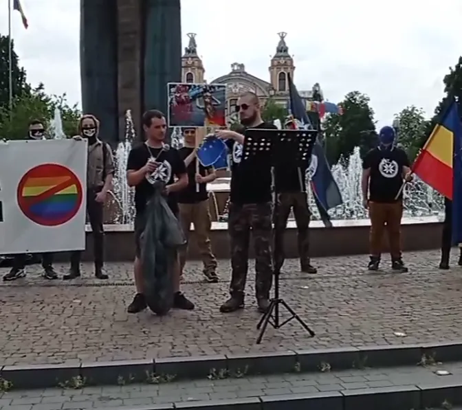 Angajatul unei multinaționale americane, Codrin Goia, șeful Noua Dreaptă Cluj, a rupt steagul UE: Ne-au adus numai parăzi ale homosexualilor - VIDEO