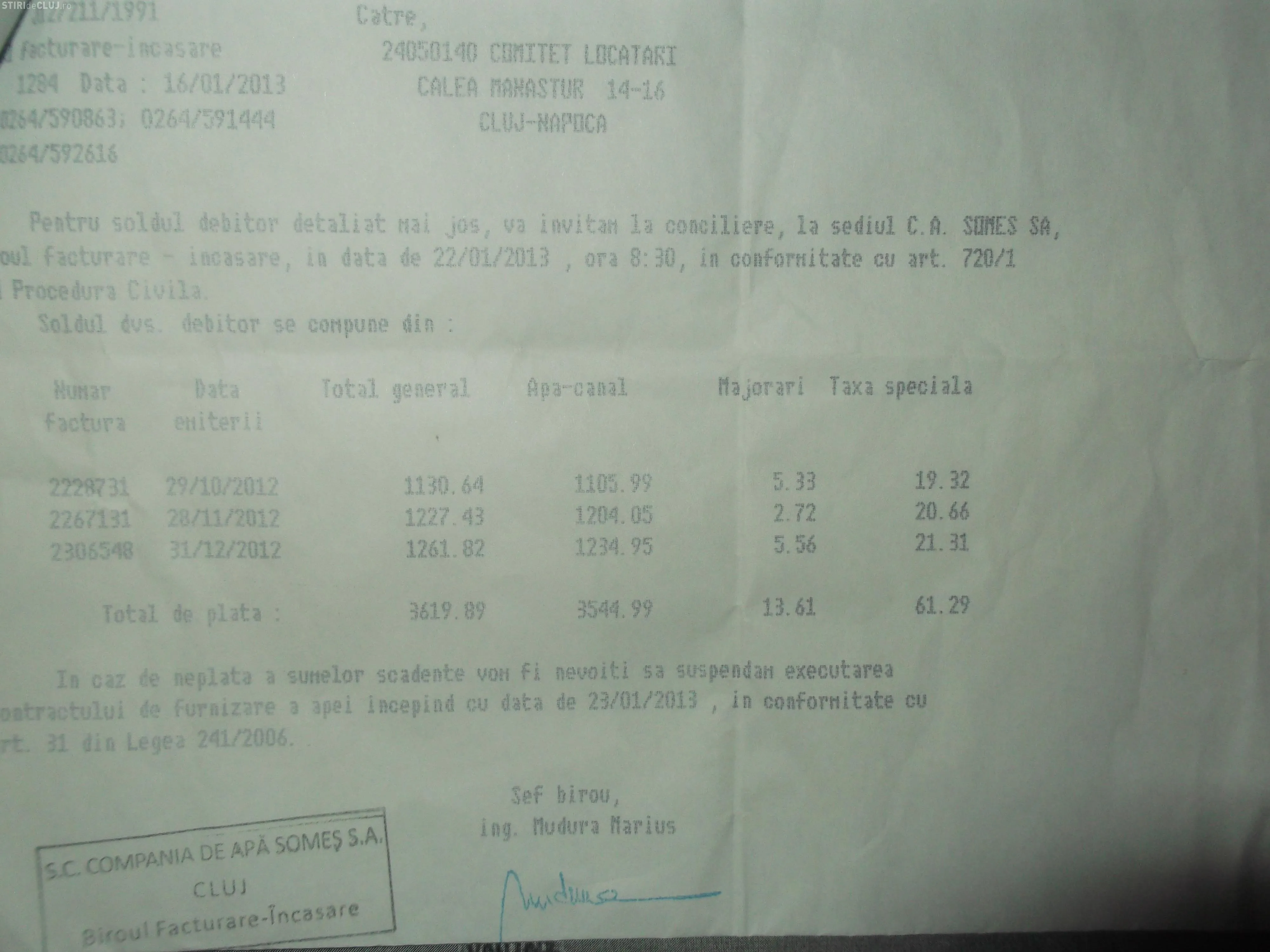 Litigiul dintre locatarii imobilelor de pe adresa amintită, pe tema achitării facturilor către Apa Somes, dureaza de mai bine de 4 ani.