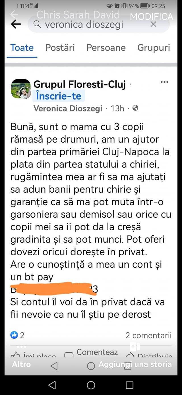 Din păcate, operația e mâine și noi nu mai dispunem de sumă. Are 4 copii majori ce-i drept, dar ar fi o mare tragedie să rămână fără mama din cauza unei sume de bani. Soacra nu are Facebook, dar eu voi răspunde dacă cineva a găsit geanta, respectiv portofelul. Vă mulțumim mult!!”, a spus ginerele femeii, Chris Sarah David.