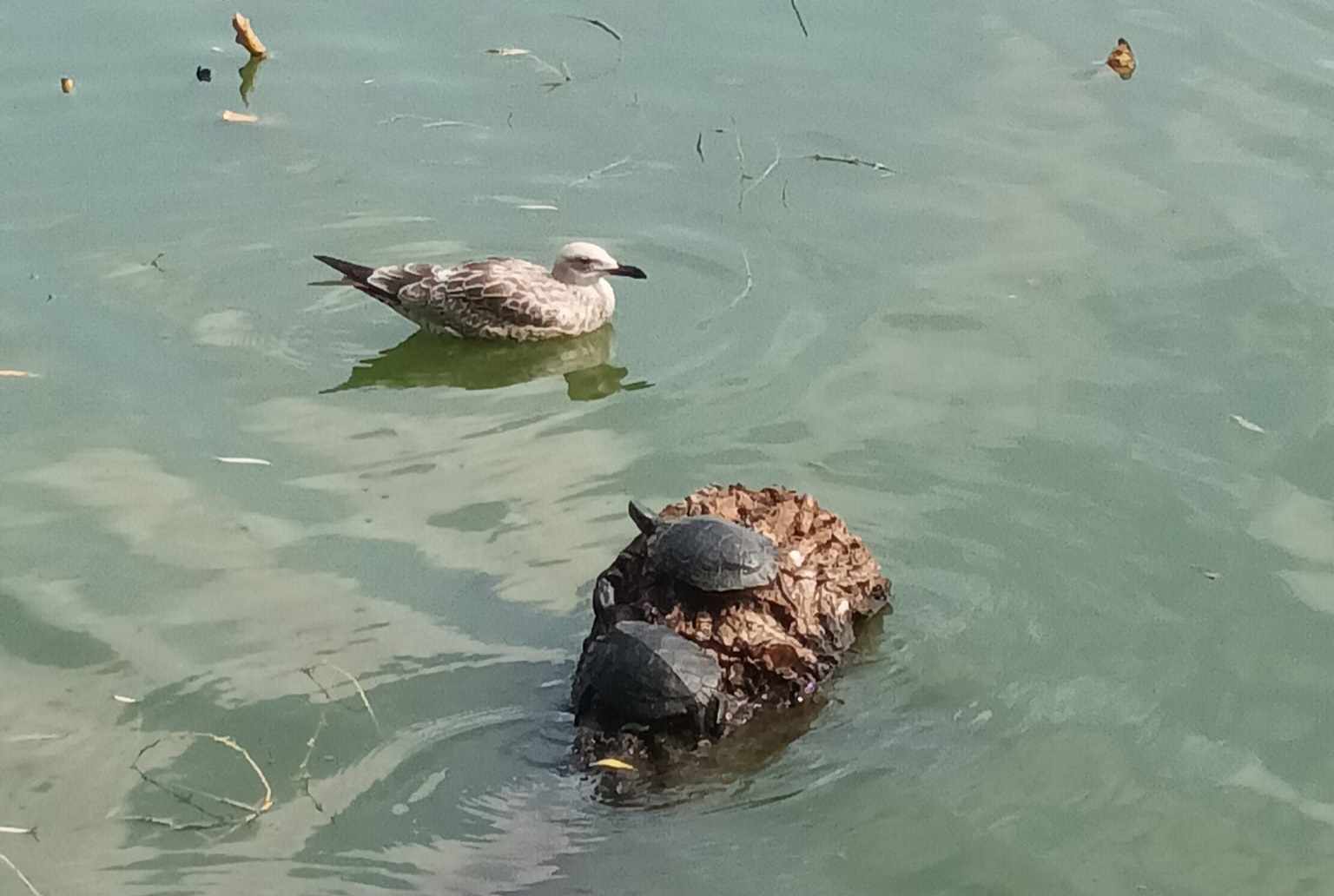 Apariție inedită pe lacul din Gheorgheni: Două țestoase își fac veacul în zona Iulius Mall - FOTO