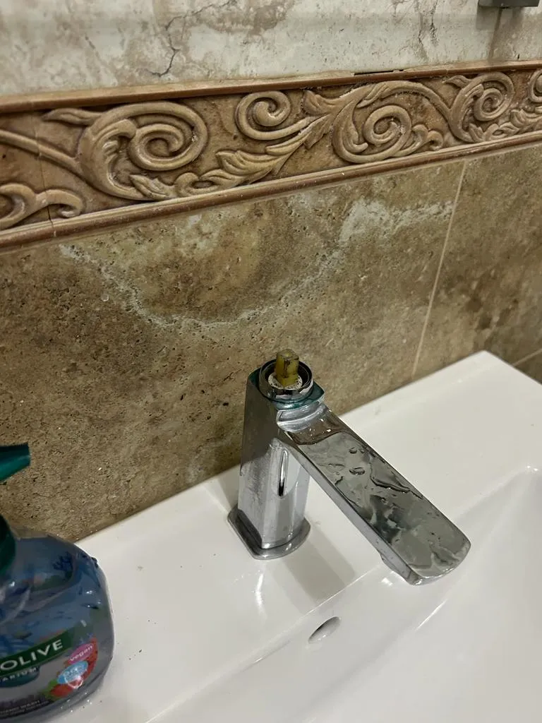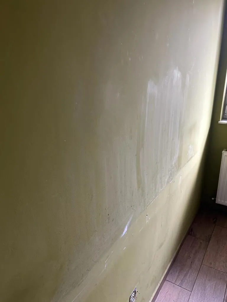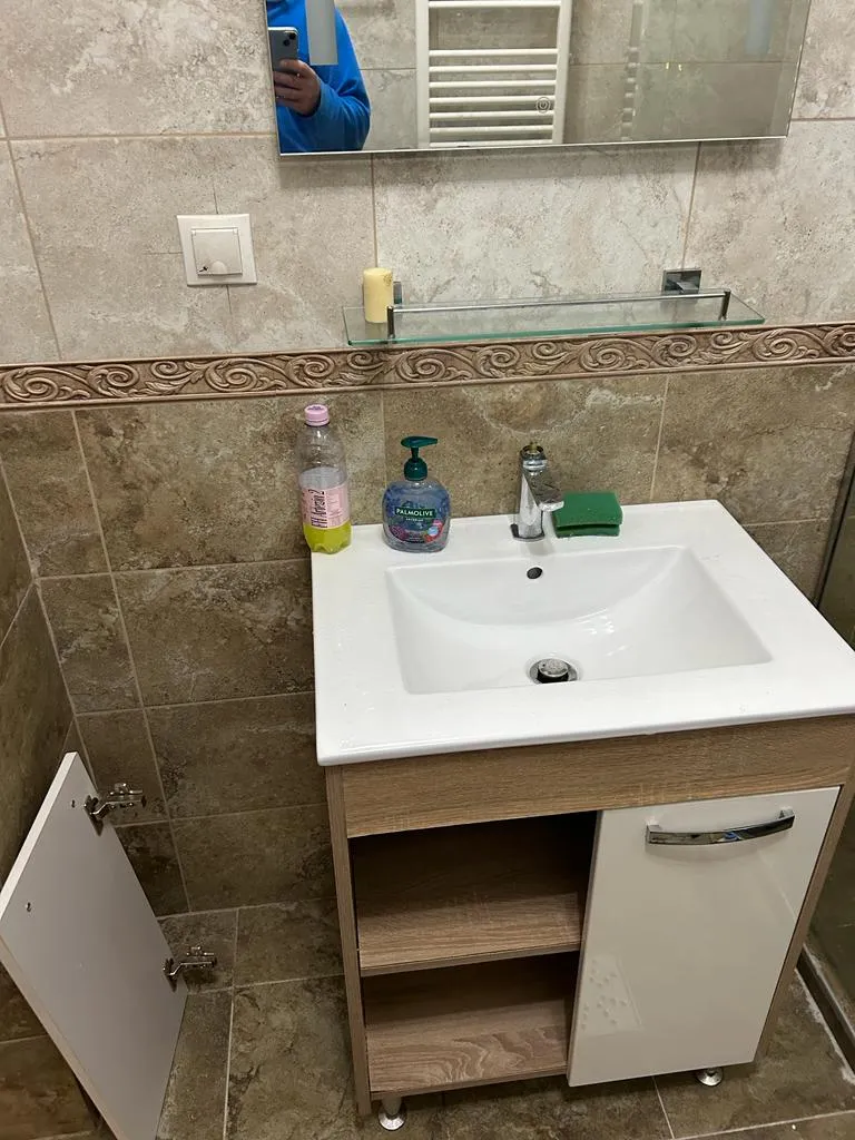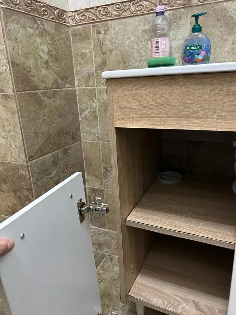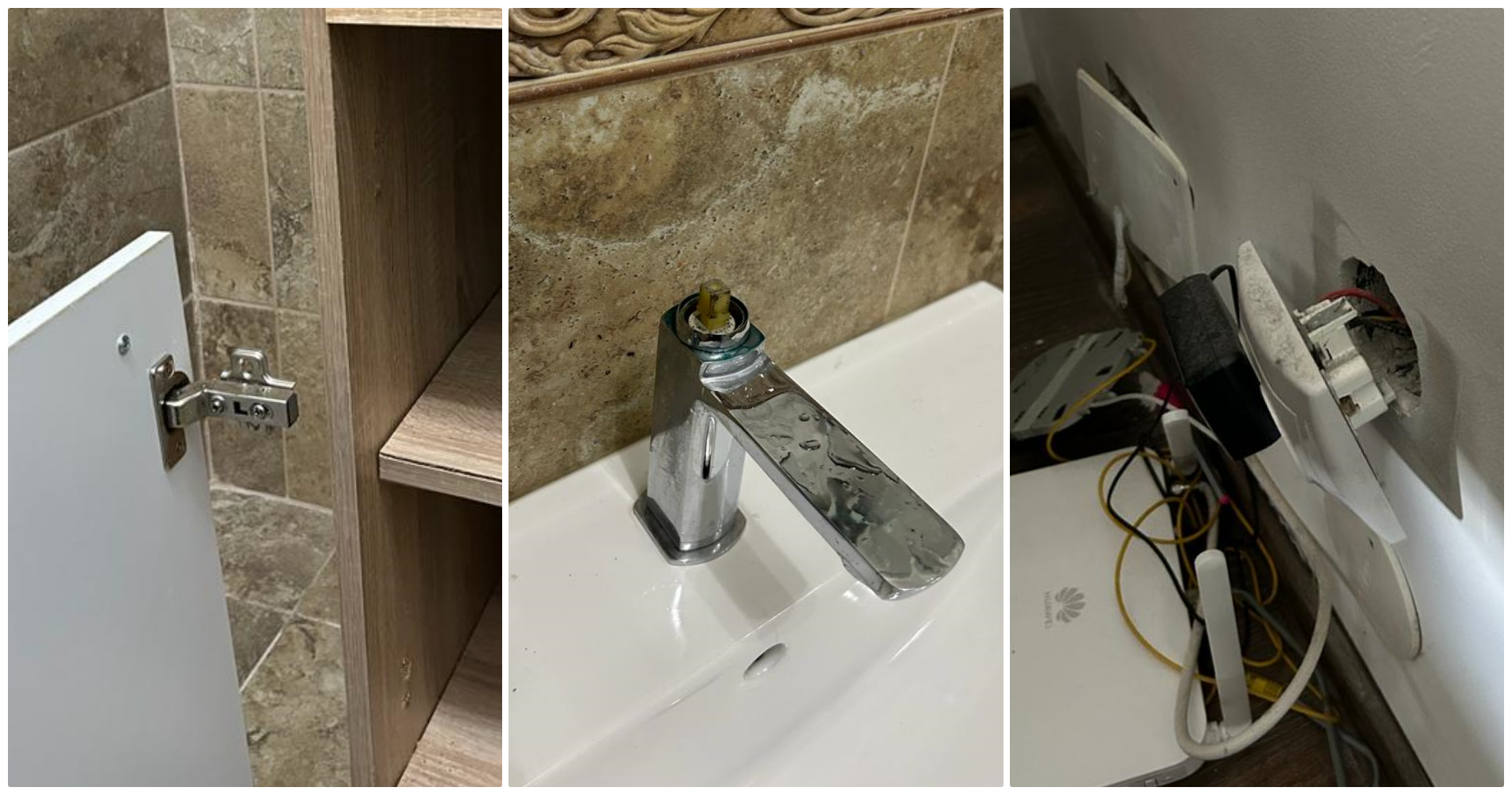 Ușile de la mobilier sunt toate rupte, robineții la fel, iar un perete a fost spart, fiind acum gletuit din nou.