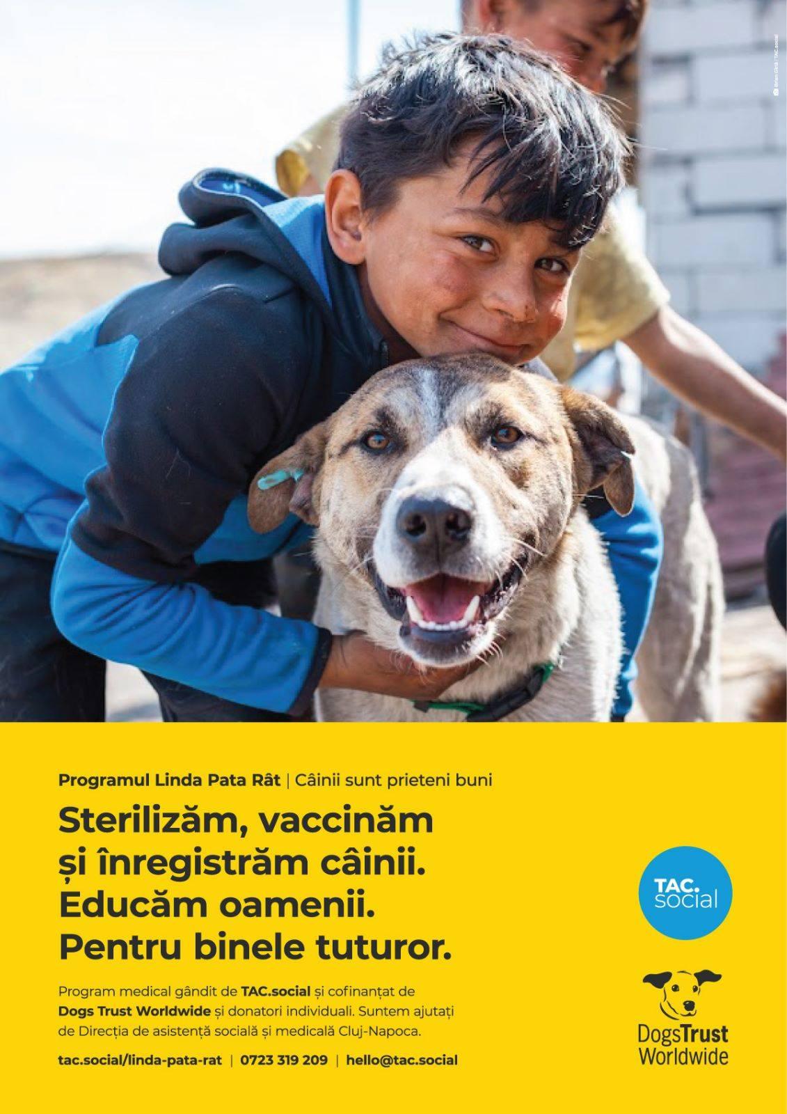 „Avem nevoie de voluntari pe teren, care să prindă câini, la Pata Rât, în campania de sterilizare-vaccinare din: 29, 30 aprilie, 2, 3 mai (sâmbătă, duminică, marți, miercuri). Oferim echipament și un mic cadou: mănuși, tricou #TAC.social, sacoșă de pânză, alte mici surprize. Mâncare și apă în fiecare zi de participare și decontarea benzinei dacă veniți cu/ folosiți mașina personală.