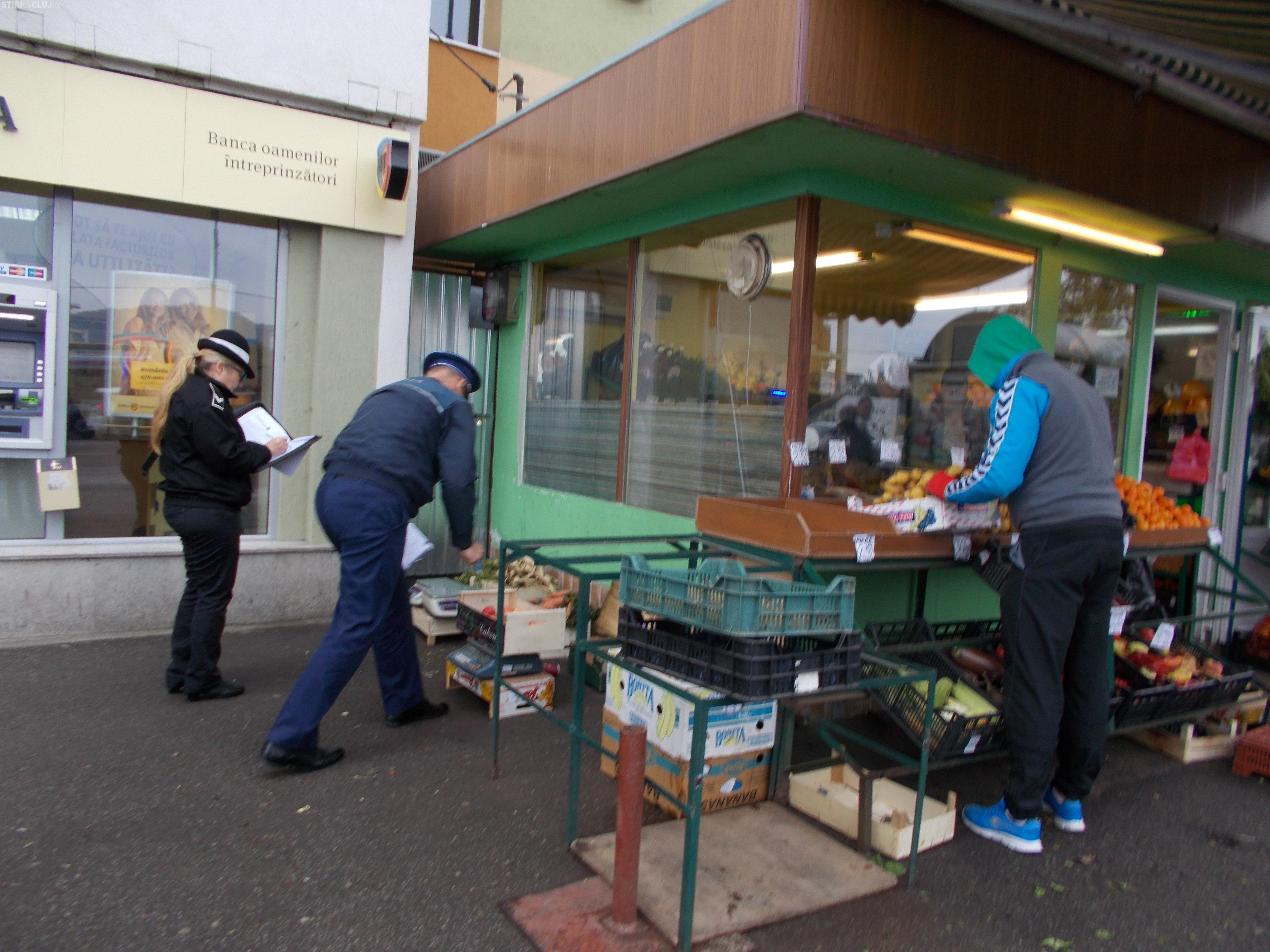 Printre aspectele urmărite s-au numărat combaterea comerţului ambulant desfăşurat în locuri neautorizate, respectiv expunerea spre vânzare şi vânzarea legumelor şi fructelor pe domeniul public din imediata vecinătate a magazinelor specializate, amplasamentele nefiind autorizate în acest sens.