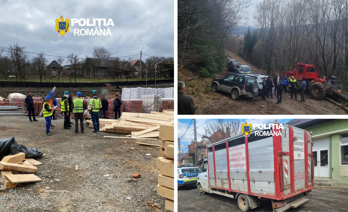 Amenzi de 170.000 de lei după controale în zona Huedin: muncitori fără contracte, lemn fără acte și animale transportate ilegal