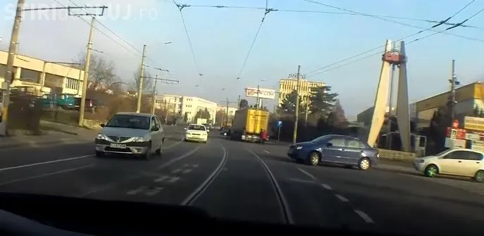 Un șofer cu camera pe bord a filmat o scenă care se putea solda cu un accident.