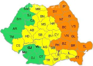 Meteorologii de la ANM au emis un avertisment de tip cod galben și cod portocaliu pentru cea mai mare parte din țară, valabil pentru următoarele zile.