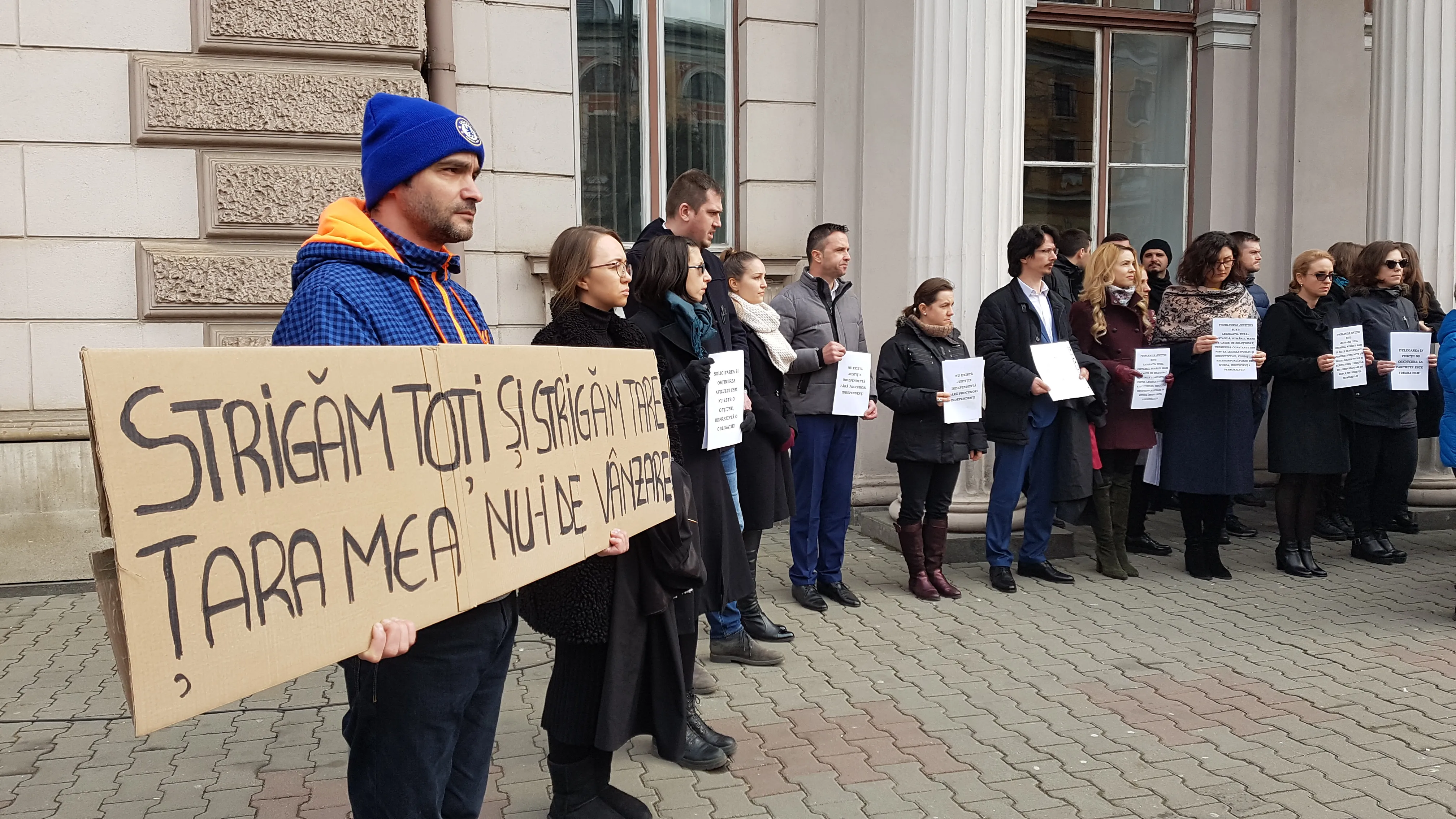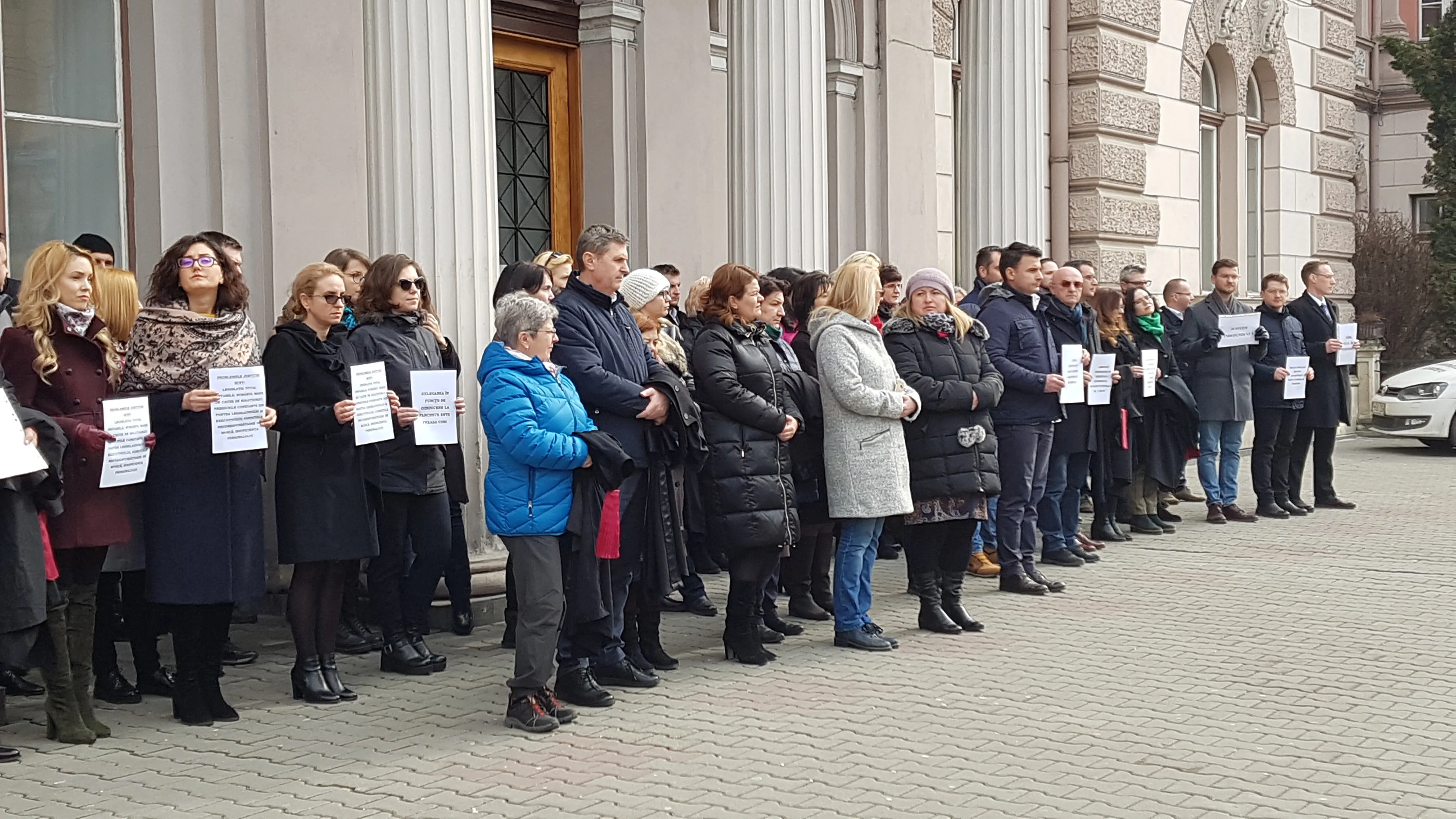 ”Judecătorii și procurorii clujeni au ieșit din nou în stradă pentru a continua protestul. Este vorba despre nemulțumirea legată de adoptarea OUG 7 din 2019 și eșuarea acelor negocieri purtate între CSM și Guvernul României pentru renunțatea la ordonanță. Aș vrea să punctez foarte clar că asociațiile profesionale care s-au dus ieri la Guvern nu reprezintă voința judecătorilor și procurorilor. Singurul care este menit instituțional să ne reprezinte este Consiliul Superior al Magistraturii, iar în CSM s-a decis clar să se solicite Guvernului renunțatea la OUG 7, cu excepția acelui articol care interesează admiterea la INM.