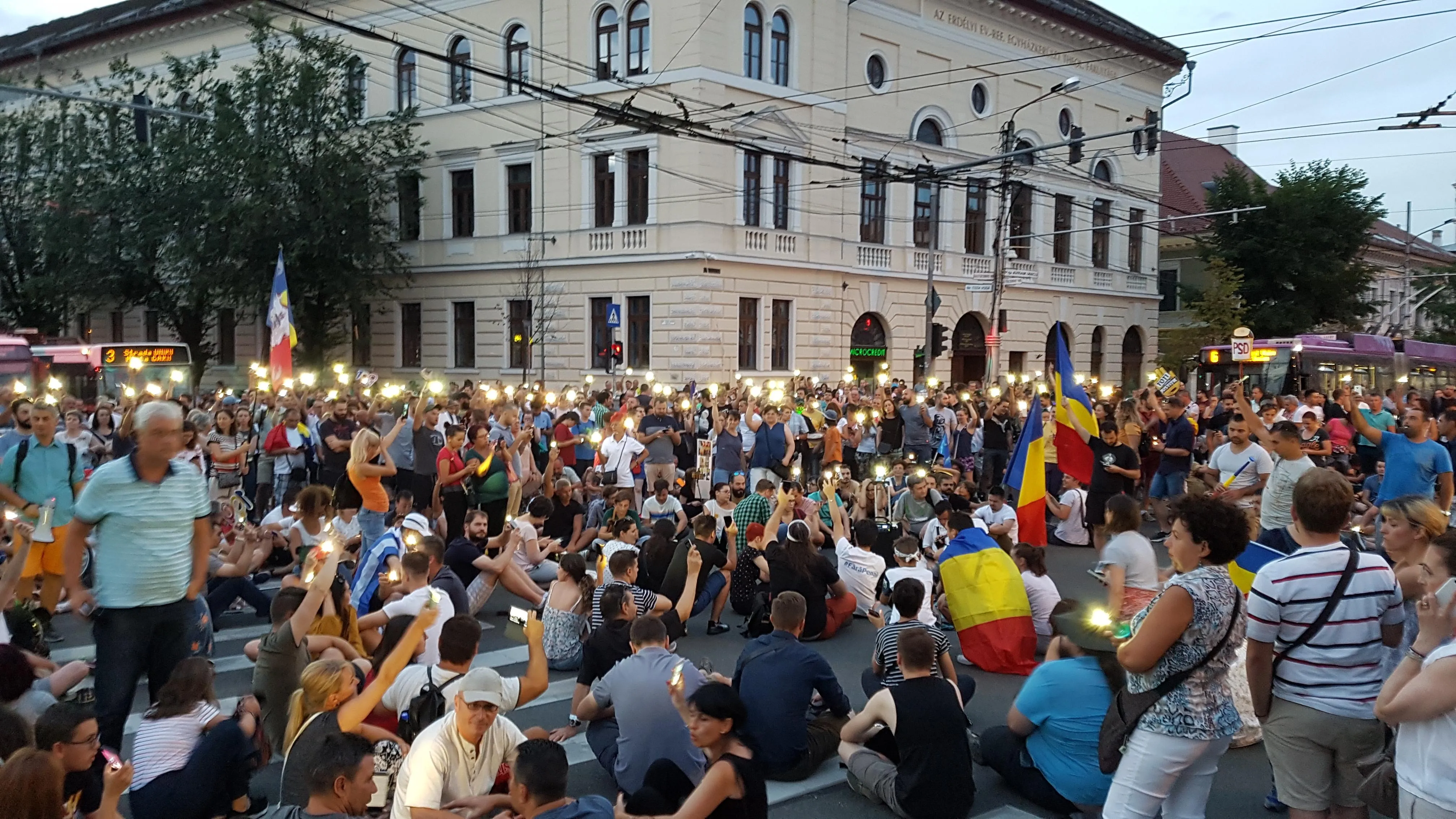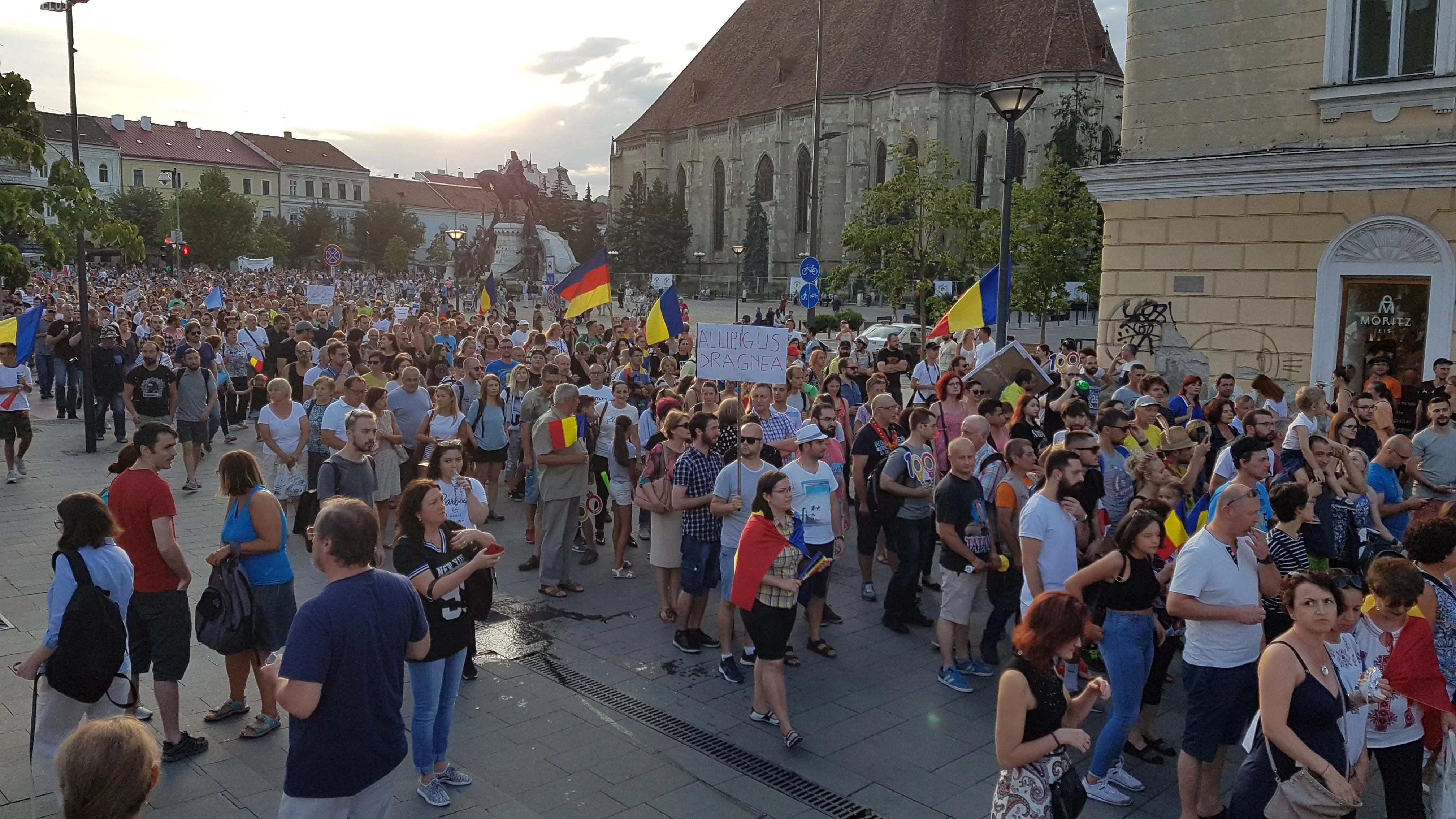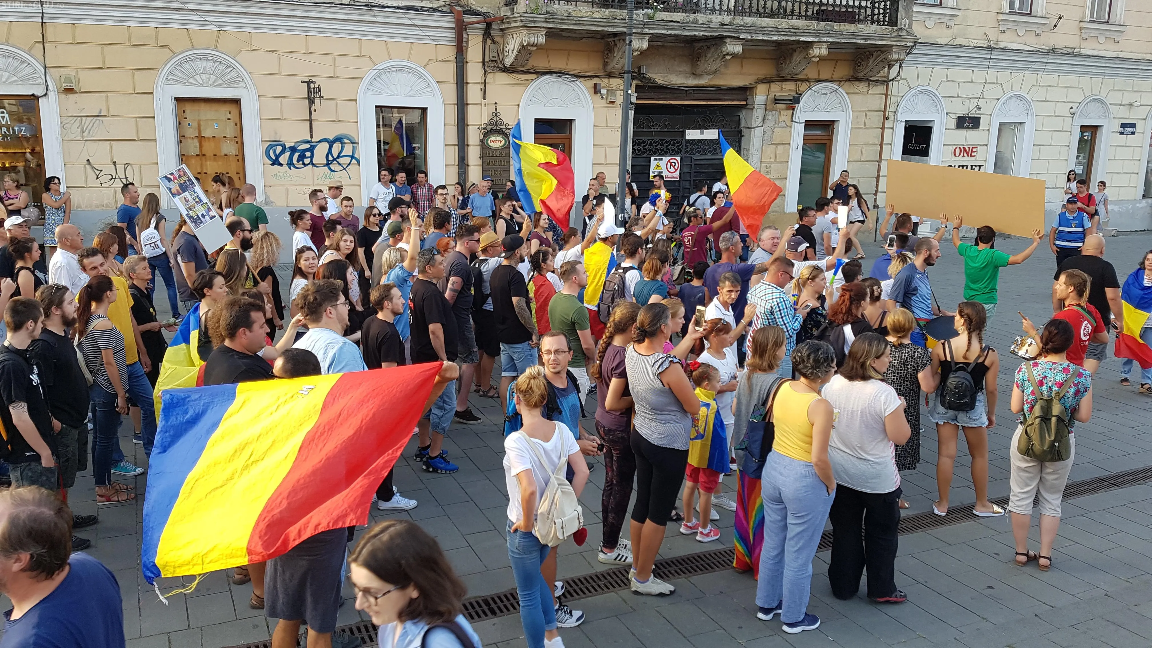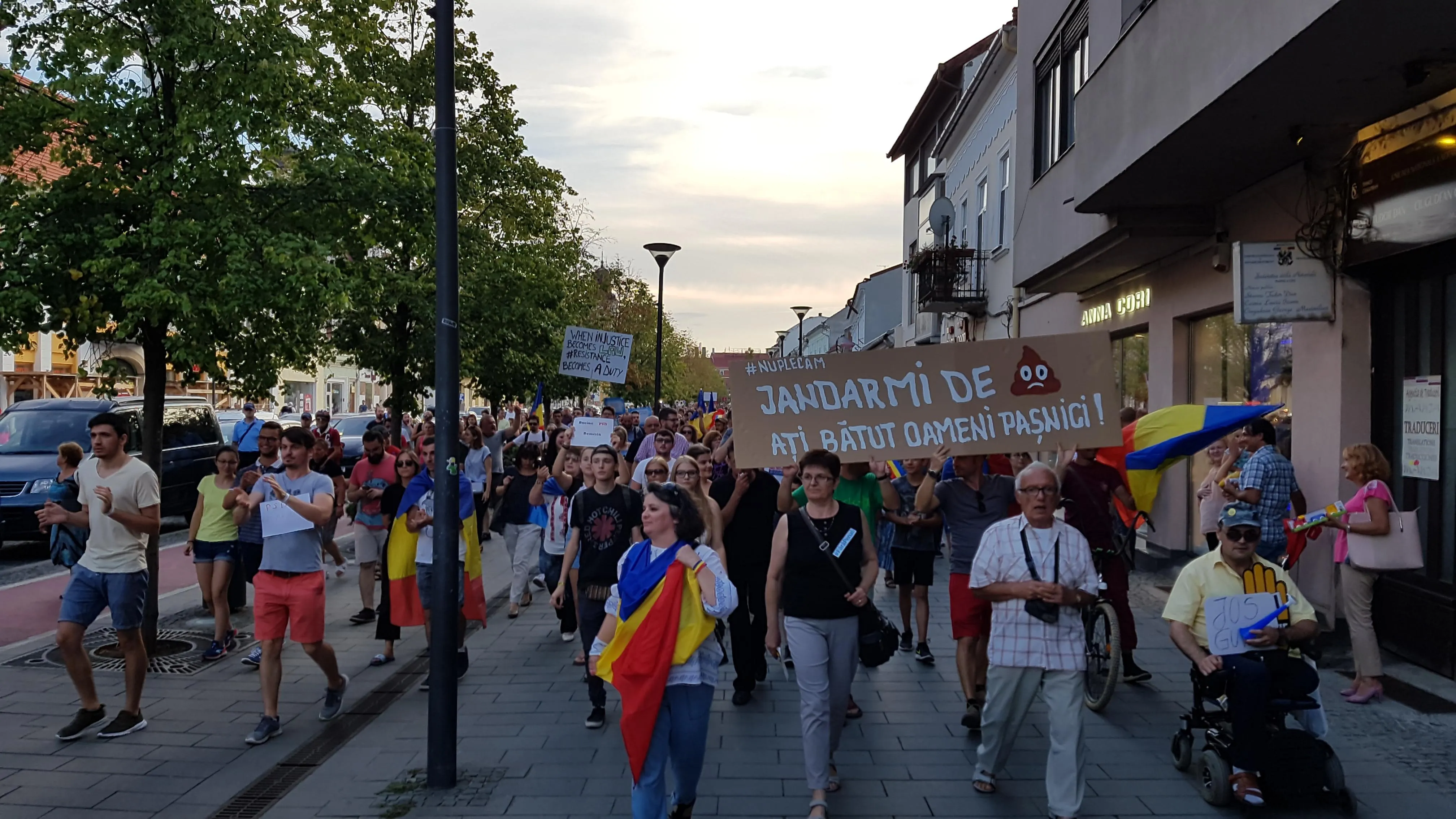 Protestatarii s-au întâlni, după ora 19.00, în Piața Unirii, apoi au plecat în marș spre sediul Prefecturii.