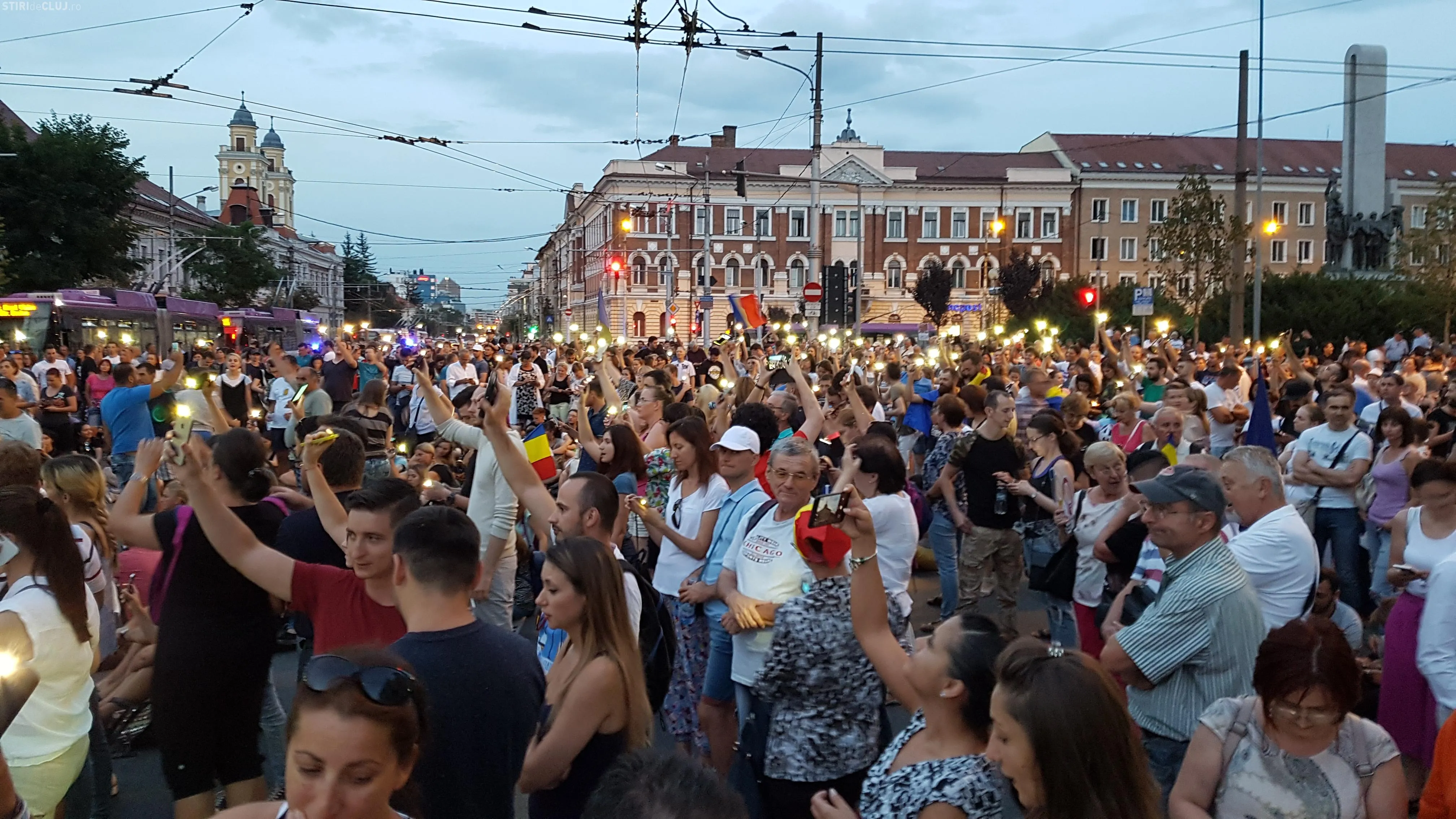 Peste 5.000 de oameni au ieșit în stradă, sâmbătă seară, la Cluj-Napoca, în semn de solidaritate cu manifestanții care au fost bătuți de jandarmi la București, vineri seară.