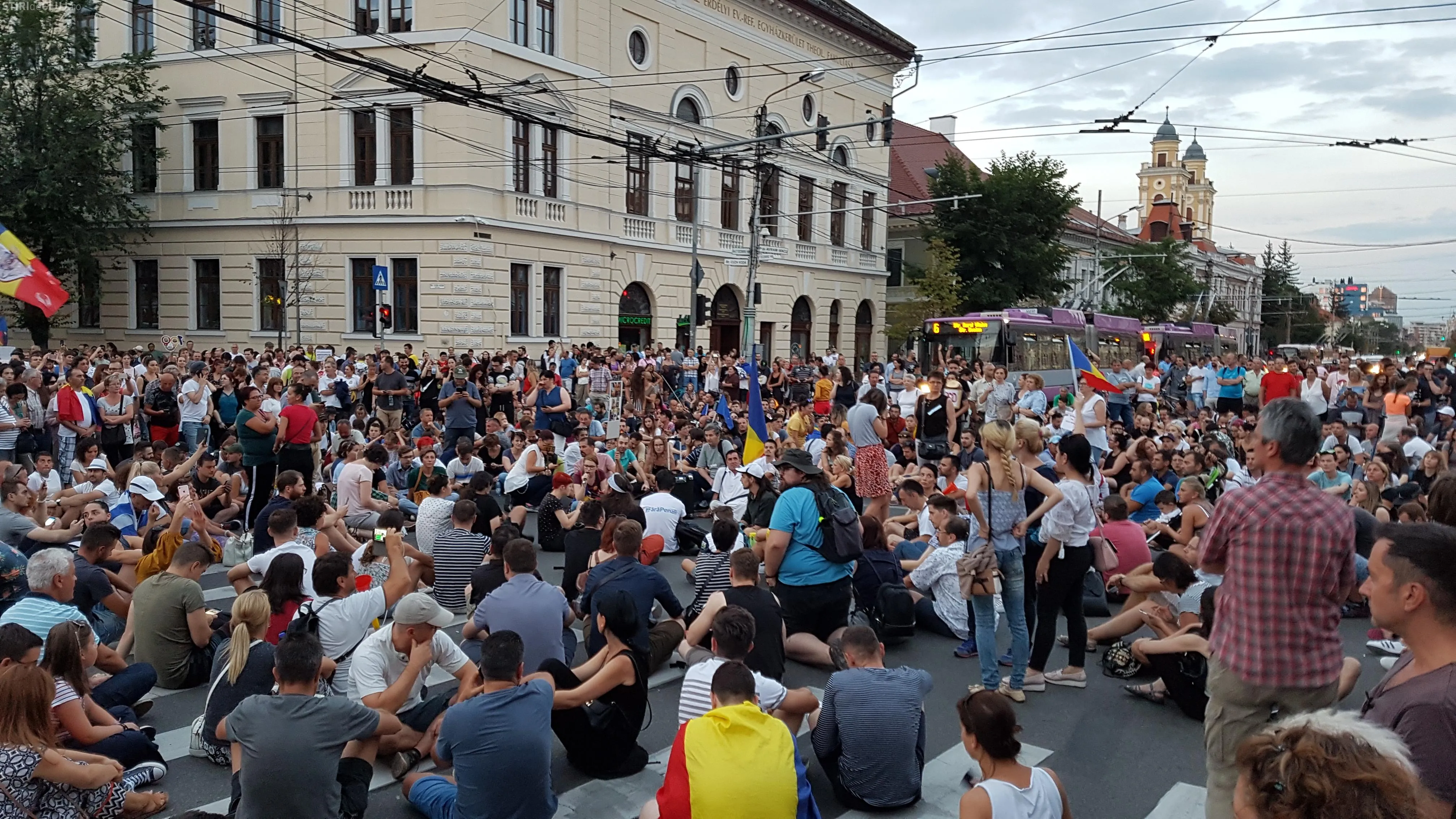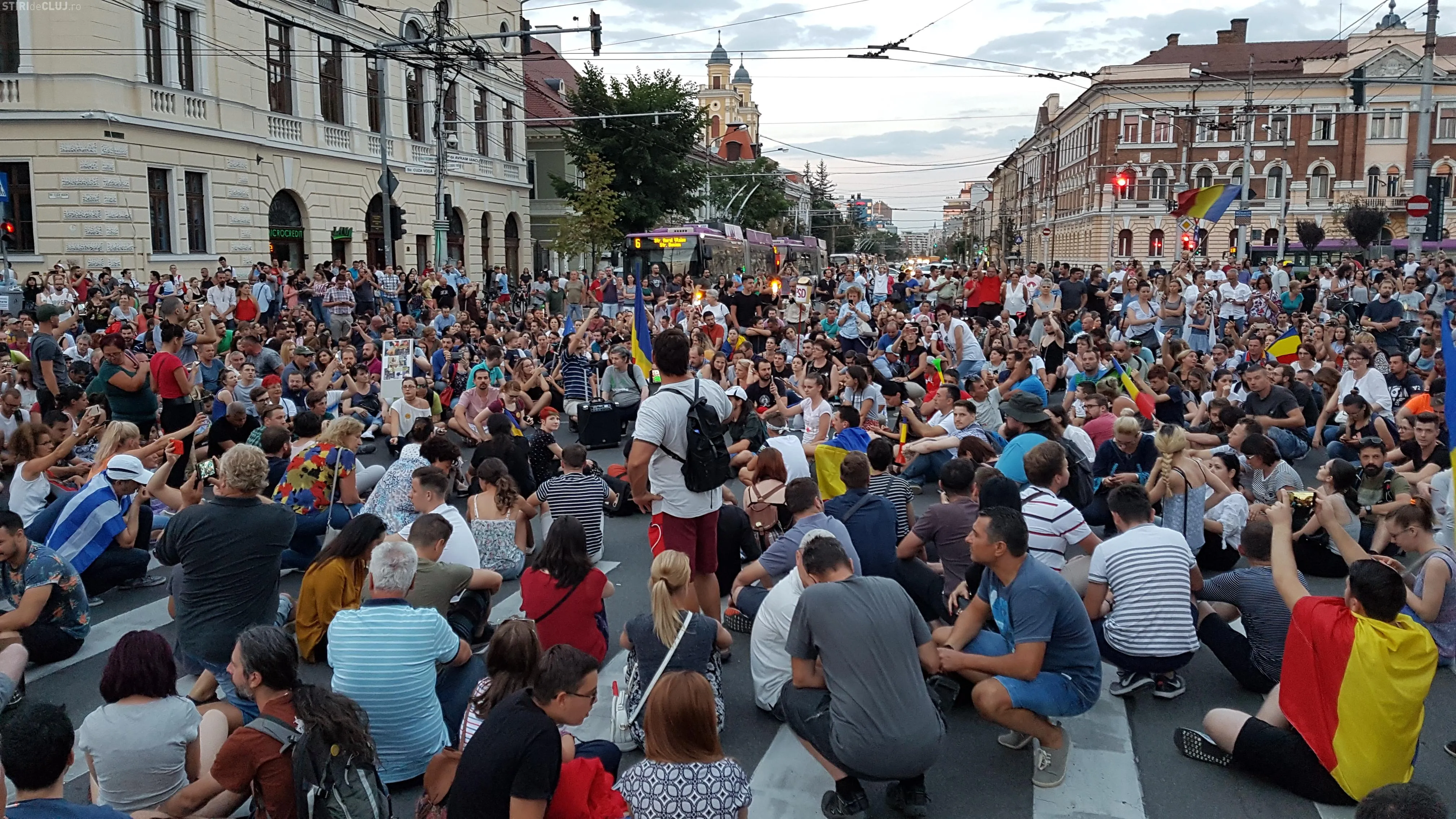 Traficul din zona centrală, pe rutele Zorilor, Piața Mihai Viteazu, Mănăștur și Mărăști este blocat. Tinerii au scandal și au pus melodii patriotice la o boxă mobilă. Ei au stat în fața prefecturii circa 4 ore. Au dansat Hora Unirii și au cântat melodia ”Treceți batalioane române Carpații”