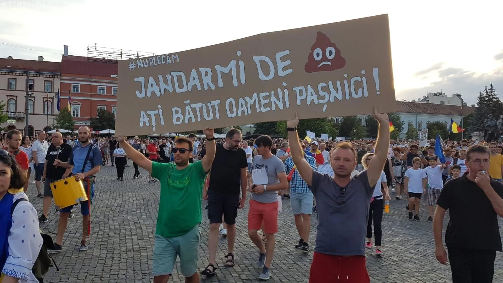 Spre deosebire de manifestările trecute, clujenii au venit de această dată și cu pancarte cu mesaje împotriva Jandarmeriei, scandând ”Rușine să vă fie!” și ”Jandarmeria apără hoția!”.