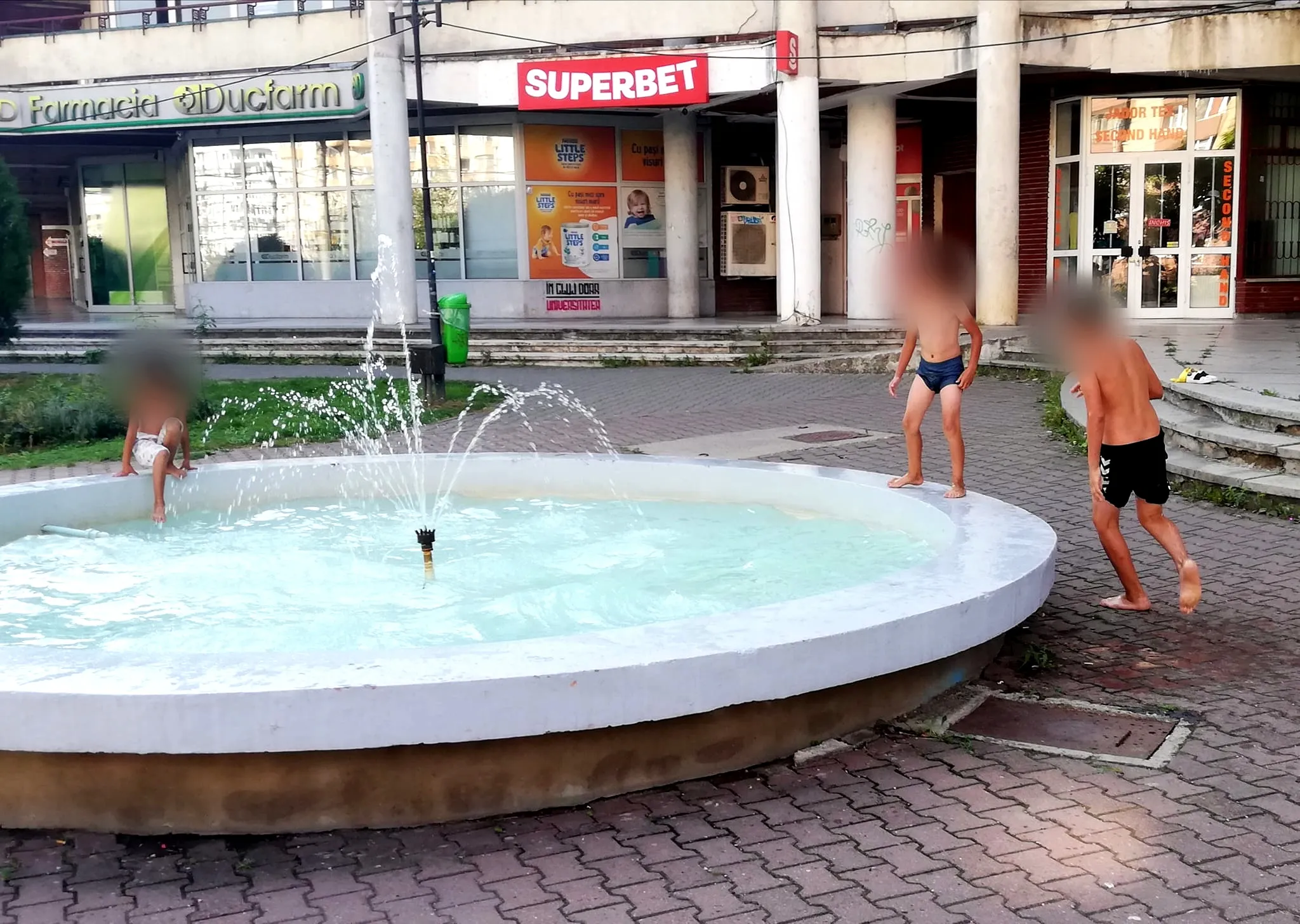 Un grup de copii făcea baie în fântâna arteziană, distrându-se foarte bine. Nu au copiii nicio vină, dacă municipalitatea nu realizează bazine unde să poată merge copiii.