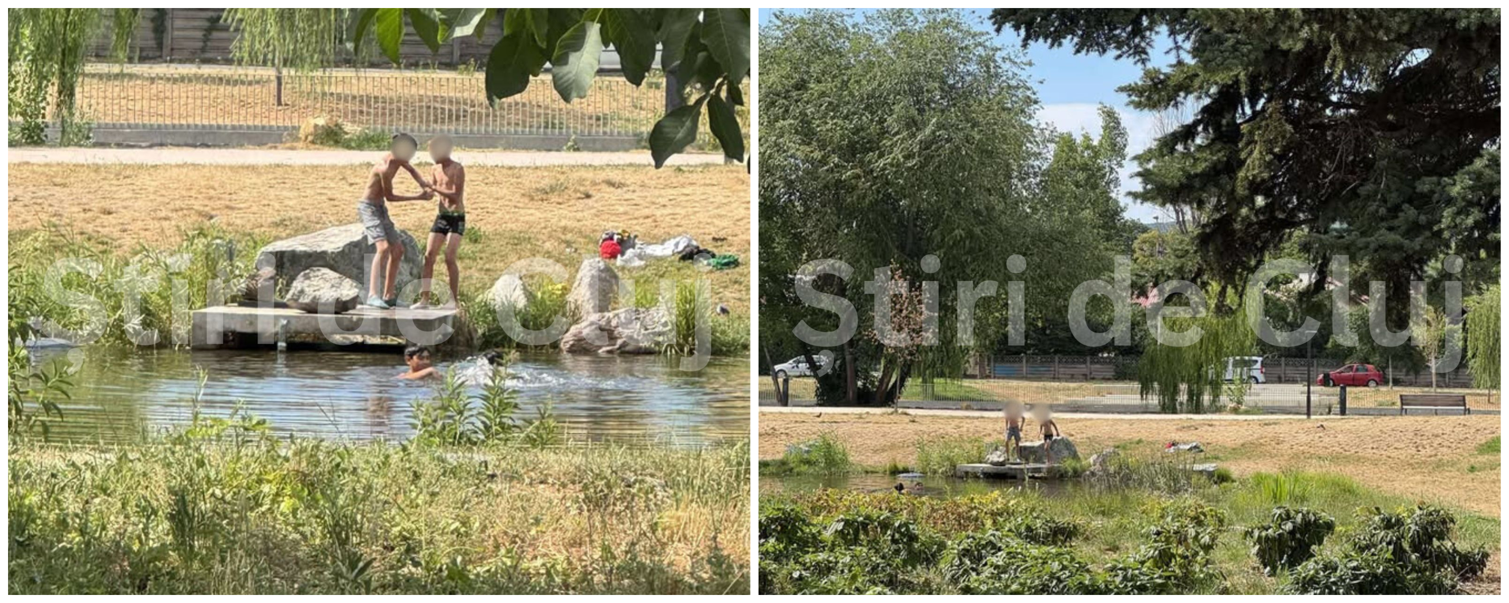 Aquapark doar pe hârtie, dar un pericol real în parc! Copiii din Cluj recurg din nou la bălăceală improvizată în parcul Feroviarilor FOTO/VIDEO