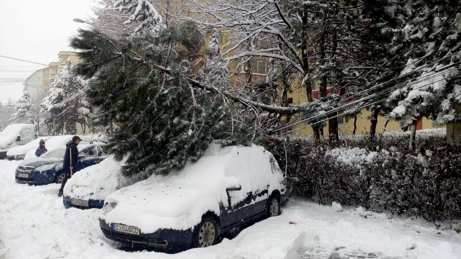 ”Ca urmare a avertizărilor meteorologice de cod galben pentru ninsori emise, la nivelul județului Cluj nu s-au înregistrat efecte majore, pompierii fiind solicitați să intervină în cursul nopții și al dimineții în șase locații diferite din municipiul Cluj-Napoca, unde arbori sau ramuri de arbori au cedat sub greutatea zăpezii și au căzut peste autoturismele parcate. Nu au fost persoane rănite în urma acestor evenimente, fiind înregistrate doar pagube materiale”, anunță ISU Cluj.