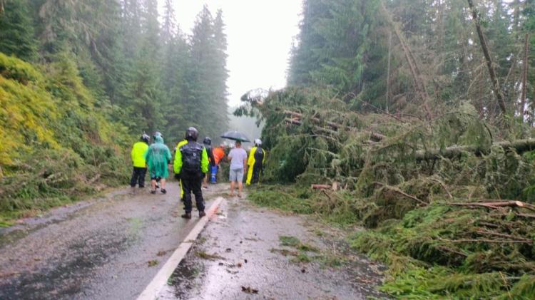 Potrivit ISU Alba, din informațiile apelanților, a fost vorba despre aproximativ 50 de autoturisme blocate pe DN67C, din cauza arborilor căzuți pe carosabil.