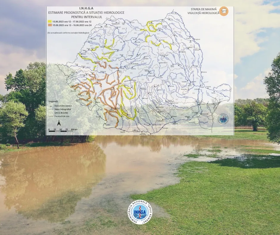 În arealul Apele Române Someș-Tisa, Avertizarea hidrologică de tip cod galben este valabilă în intervalul 15.06.2023, ora 12:00 – 17.06.2023, ora 12:00, pe râurile din bazinele hidrografice: