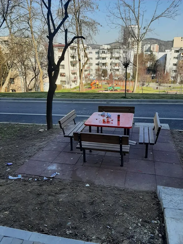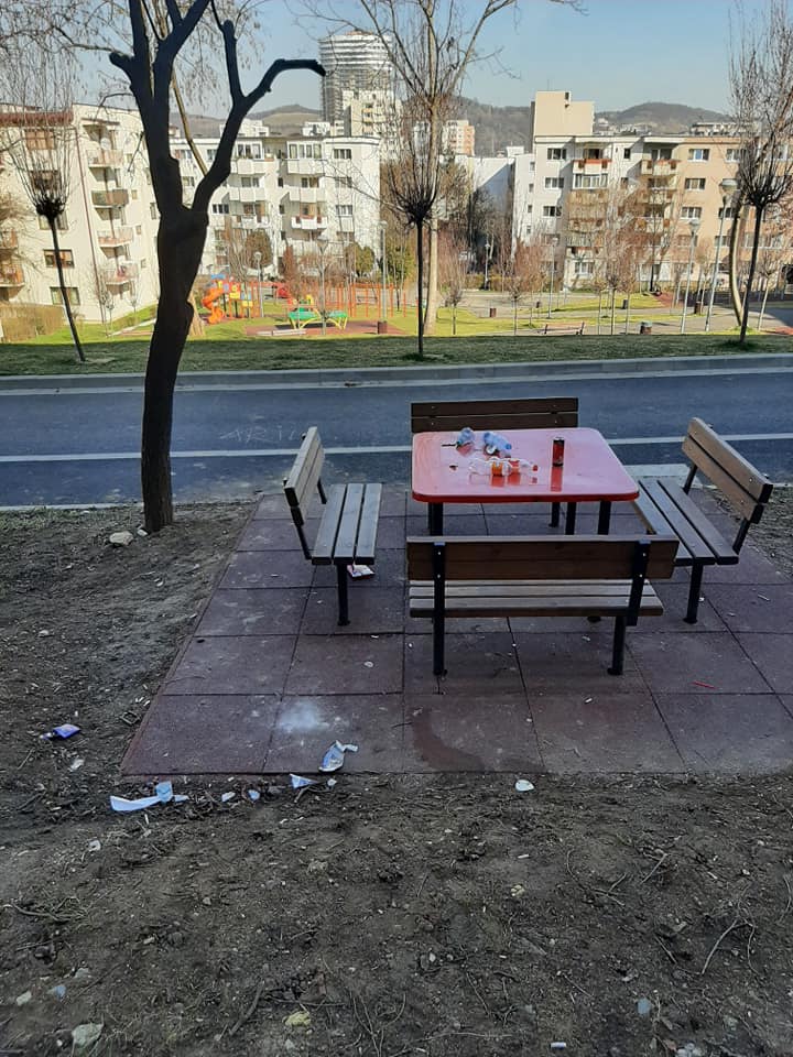 ”Cam asa arata aproape in fiecare dimineata parculetul nou din Manastur Primaverii dupa ce unii tineri se satura de stat si consumat desigur acum serios chiar e greu sa lasi curat dupa tine!!”, a criticat un mănășturean, sătul de mizerie.