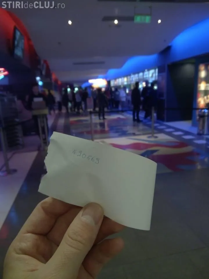 Un clujean s-a dus la cinema, la Cinema City Vivo Cluj (fostul Polus), iar în loc de bilet printat a primim o foaie de hârtie pe care era trecut codul biletului.
