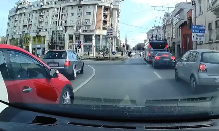 Așa au loc tragediile! Șofer, la un pas să lovească altă mașină, după o depășire periculoasă în Piața Cipariu din Cluj - VIDEO