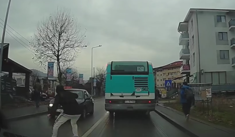 Deoarece acesta nu s-a asigurat, iar vizibilitatea șoferului de pe banda opusă era redusă din cauza autobuzului, o adevărată tragedie a fost la un singur pas să se producă.