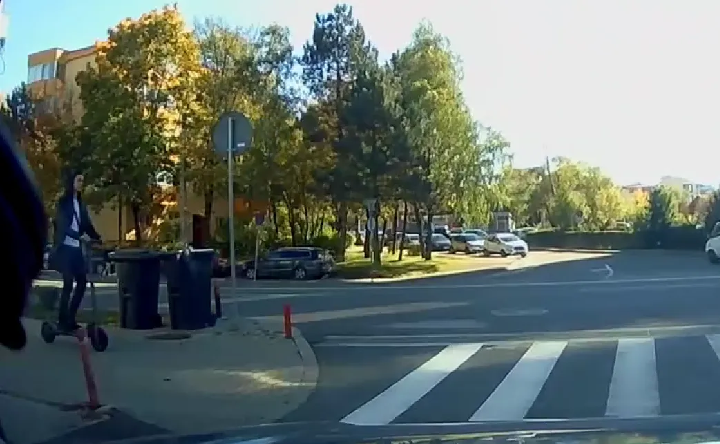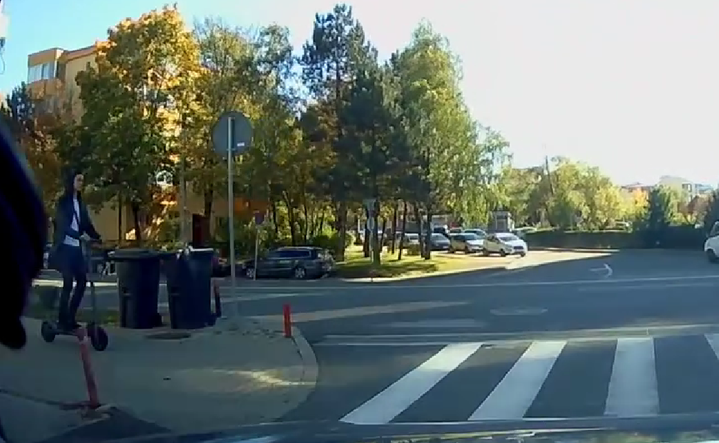 Un astfel de eveniment, în care o mașină era la o secundă să calce un băiat care se deplasa pe o trotinetă, iar la trecerea de pietoni nu a redus viteza și nu s-a asigurat, a avut loc pe o stradă din Cluj-Napoca.